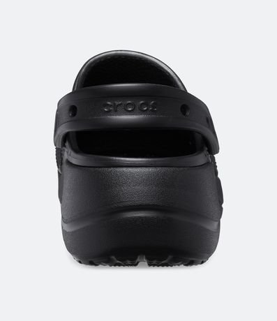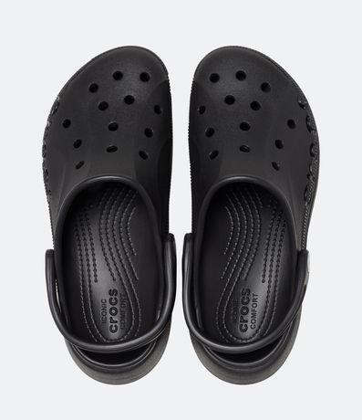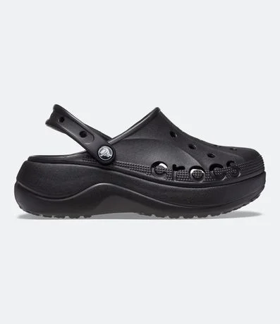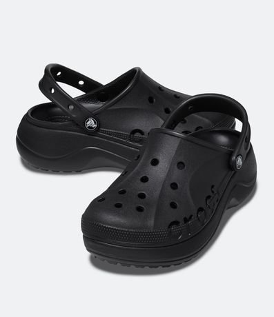 Sandália feminina babuche crocs com bico redondo, furinhos, tira no calcanhar e salto plataforma.