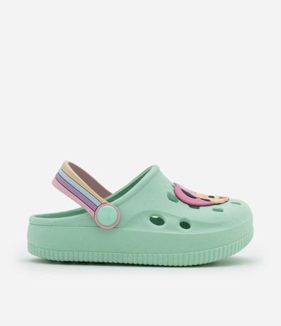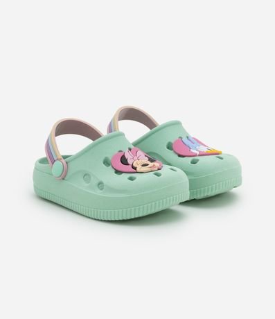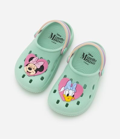 Ref: Sandália infantil de modelo babuche, confeccionada em plástico e com bico redondo. Possui patch da Minnie e Margarida e tira de sustentação colorida.