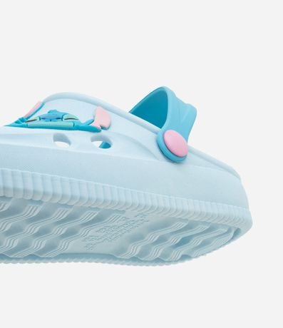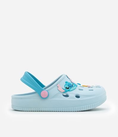 Ref: Sandália infantil de modelo babuche, com bico redondo, furinhos e tira de sustentação. Possui patchs do Stitch e da Xepa no cabedal. Item confeccionado com material de origem biológica e processo de boas práticas sustentáveis.