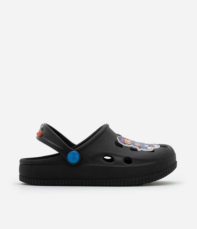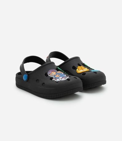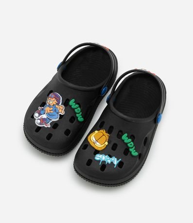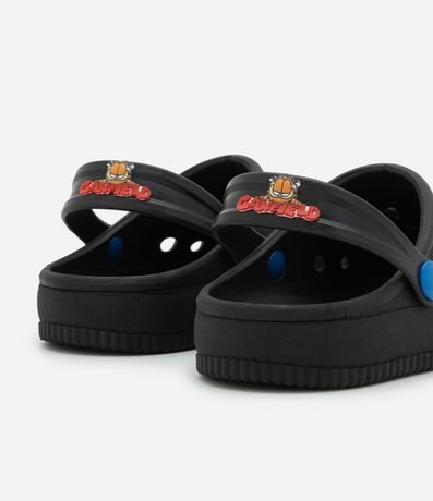 Sandalinha infantil modelo babuche, confeccionada em PVC. A peça tem aplicação de patch do Garfield na parte de cima e tira no calcanhar.