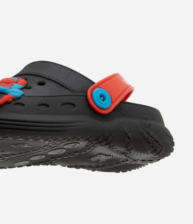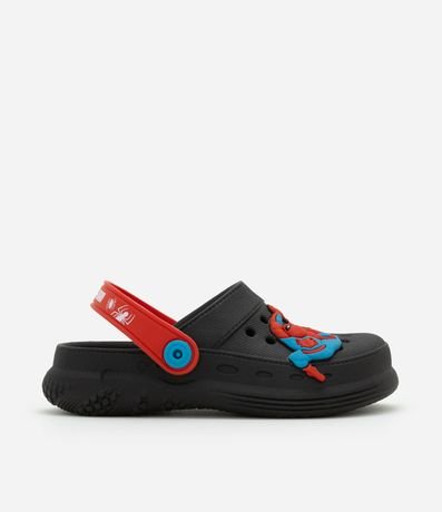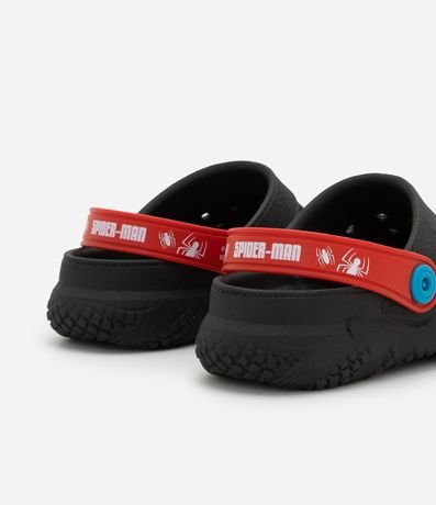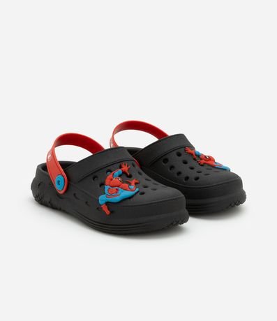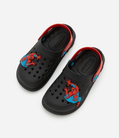 Ref: Calçado infantil modelo babuche. A sandália tem alças móveis no calcanhar e patch do herói Homem Aranha na parte superior.