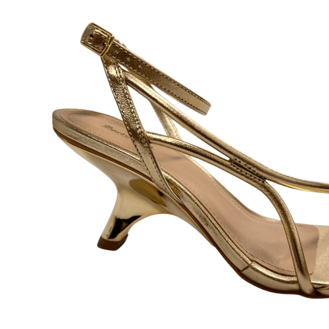 Sandália Berti Maria Feminina Salto Médio Dourado Couro