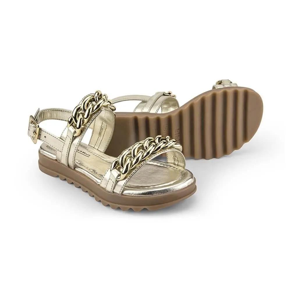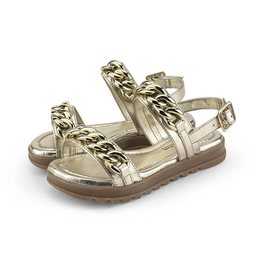 Confeccionada em material sintético, a sandália infantil feminina possui um toque super moderno com seu fechamento em fivela e enfeite de corrente, a tornando super fácil de calçar!..