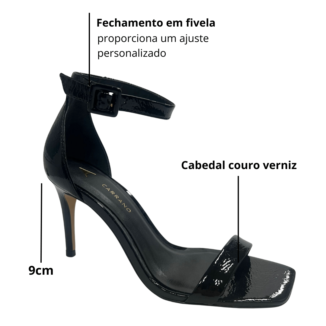 Modelo: Sandalia Carrano Feminino Preto Salto Fino Couro Verniz