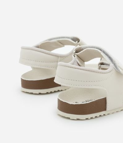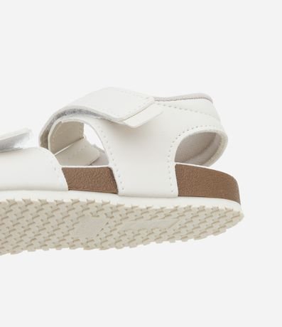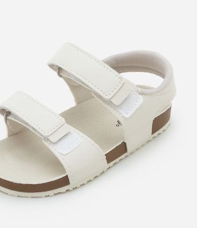 Ref: Sandália infantil de modelo comfy, confeccionada em material sintético, sem estampa, com duas tiras largas, sola contrastante bicolor e fechamento por velcro.