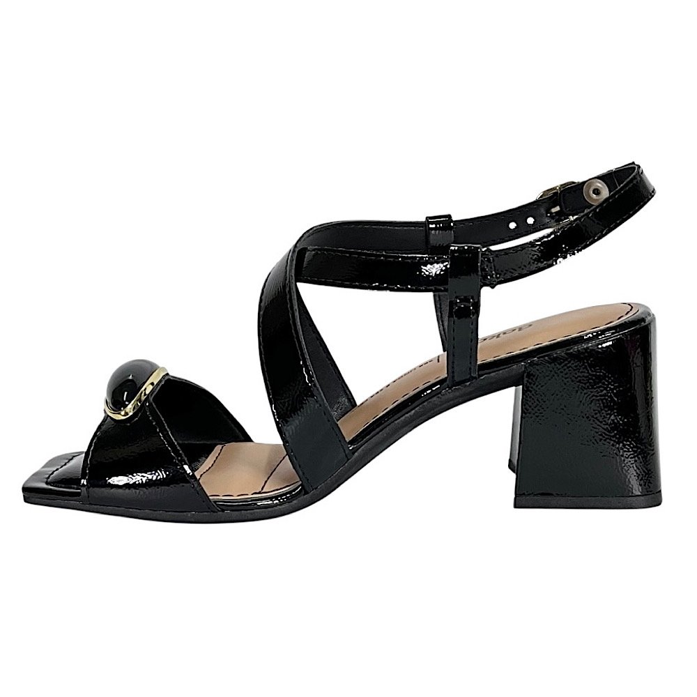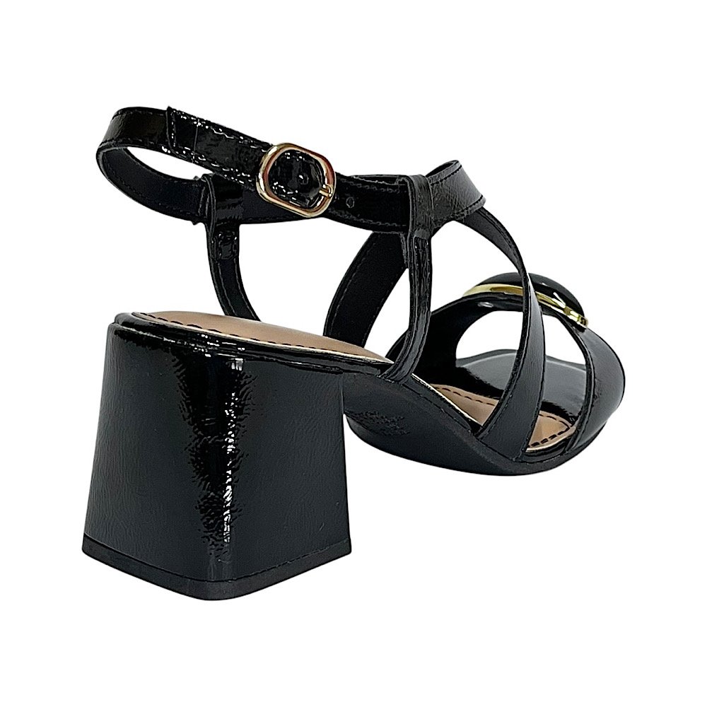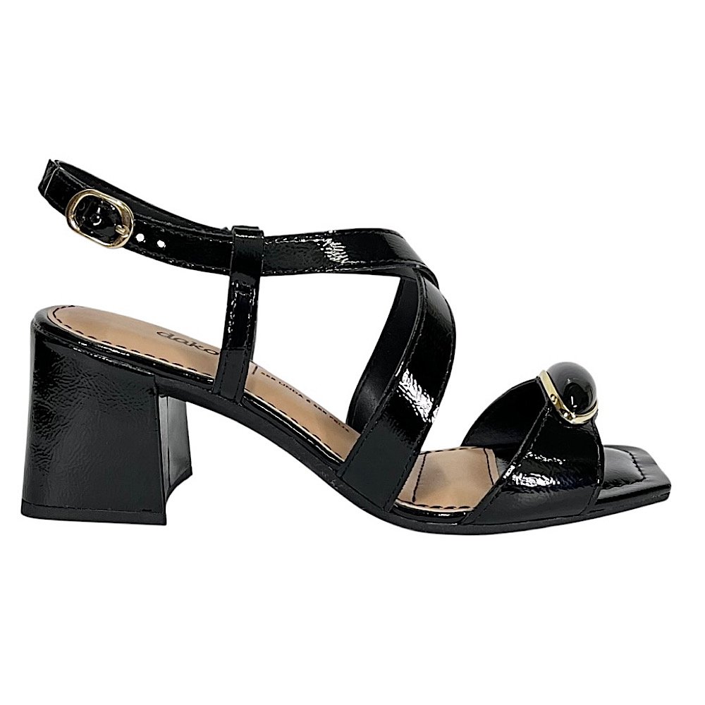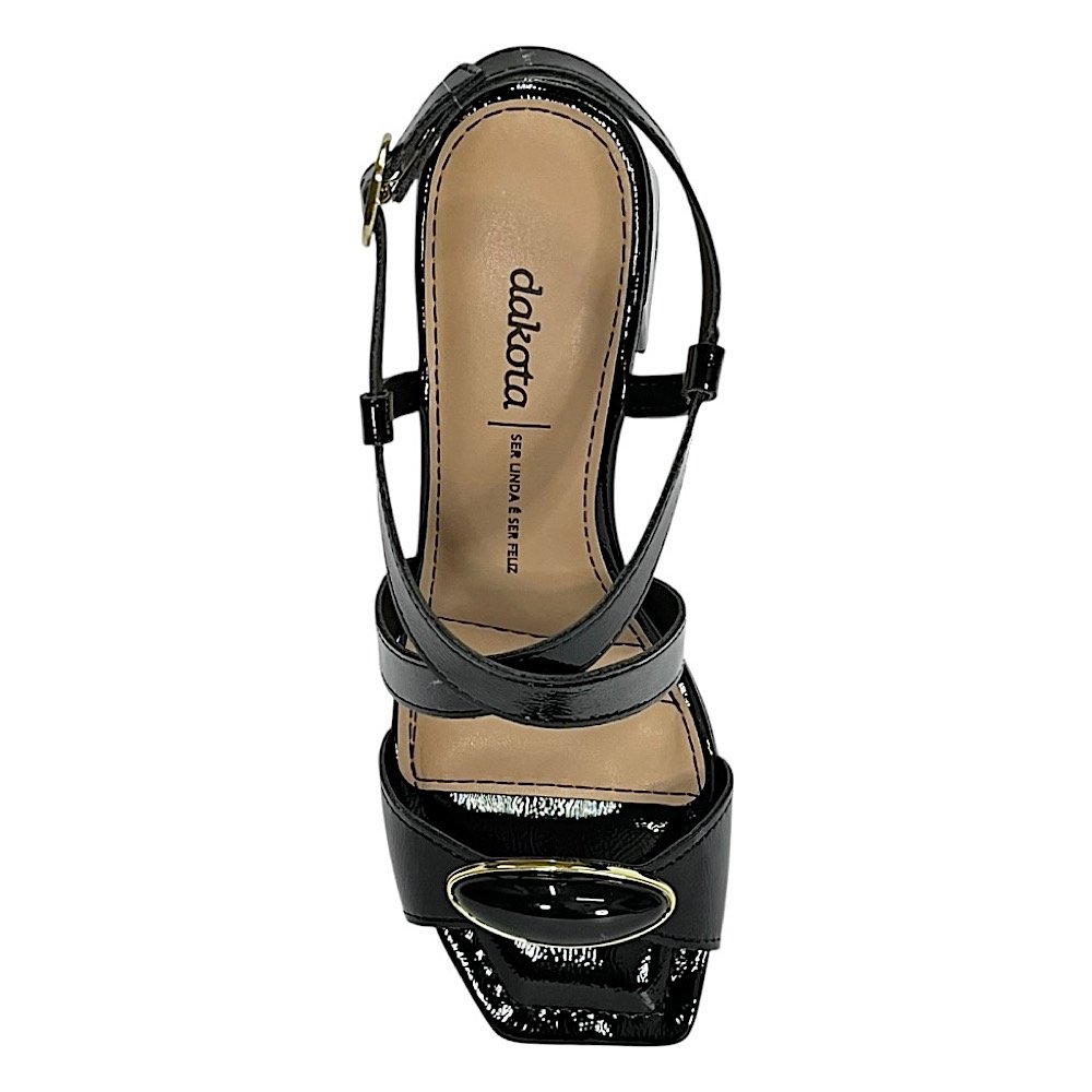 Ref: A sandália Dakota é a escolha perfeita para quem busca sofisticação e conforto em um único modelo. Confeccionada em material sintético de alta qualidade, apresenta tiras cruzadas em acabamento envernizado que proporcionam charme e elegância. Na parte frontal, o detalhe metalizado com pedraria orgânica acrescenta um toque moderno e refinado ao design. O salto bloco de 6,5 centímetros garante estabilidade, enquanto o bico quadrado segue as tendências atuais da moda. O fechamento em fivela no tornozelo oferece ajuste seguro e personalizado, tornando esta sandália versátil para compor produções do dia a dia ou ocasiões especiais.