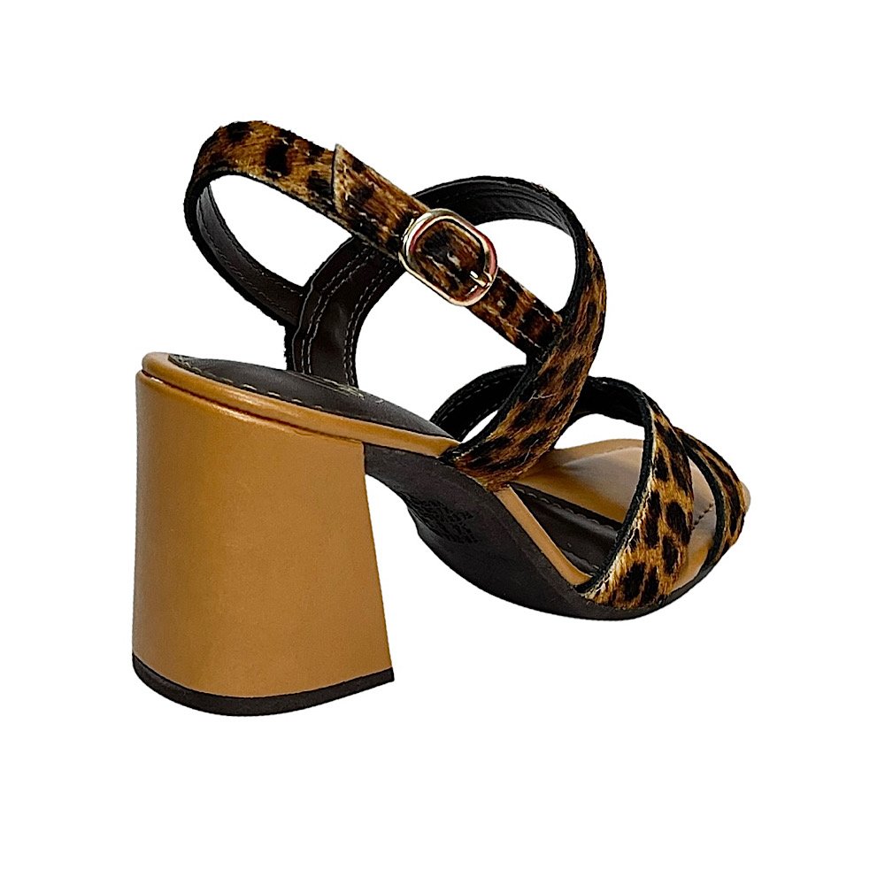 Detalhes: Tiras cruzadas em couro com estampa animal print