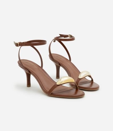 Ref: Sandália feminina de bico redondo com estampa lisa. Possui detalhes em bold em seu cabedal.
