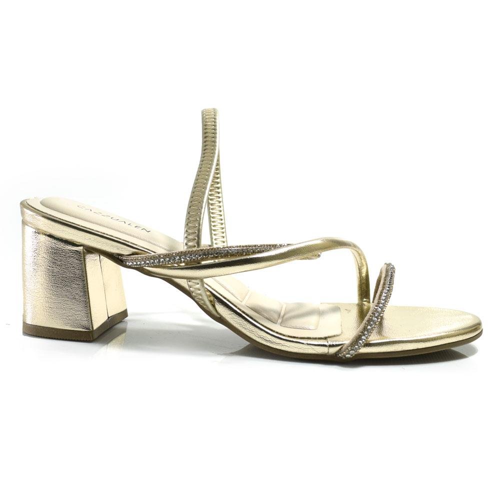 Sandália de Salto Bloco Feminina Cazzualen, confeccionada em material sintético, com fácil calce, detalhes em strass, palmilha em EVA e solado de borracha. Essa sandália é elegante, moderna e versátil. Seu salto bloco de 6cm, proporciona conforto e estabilidade seja para uso em comemorações, eventos sociais, entre outros. Coleção: Primavera/Verão 2026. Aproveite e compre online. Ref: T5280-262