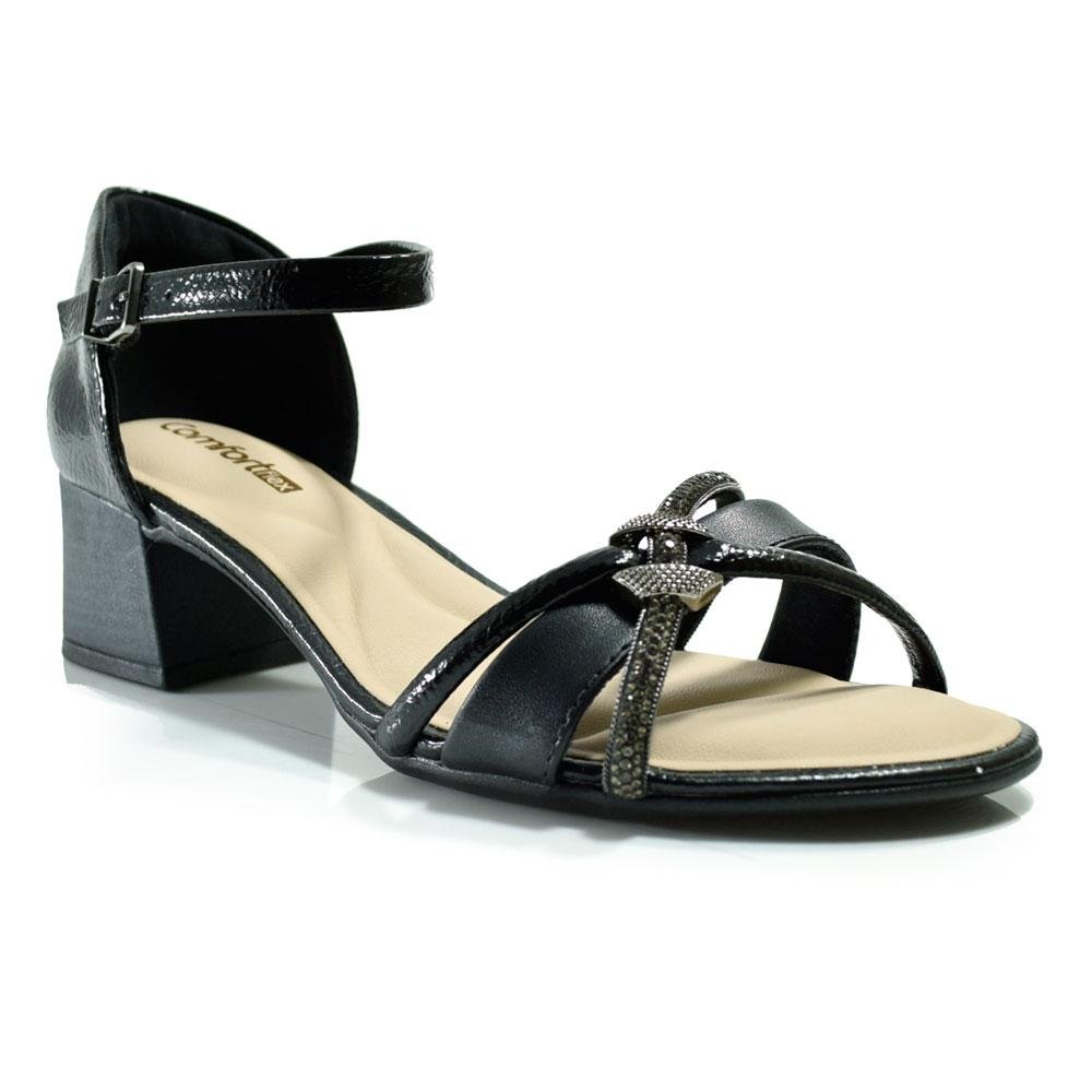 Sandália de Salto Bloco Feminina Comfortflex, confeccionada em material sintético, com fechamento em fecho metalizado regulável, palmilha em EVA, solado de borracha e detalhes em strass. Essa sandália é sinônimo de conforto e bem estar, ideal para ocasiões casuais ou sociais, para um look confortável e cheio de personalidade. Salto: 5cm. Coleção: Primavera/Verão 2026. Aproveite e compre online. Ref: 2556408