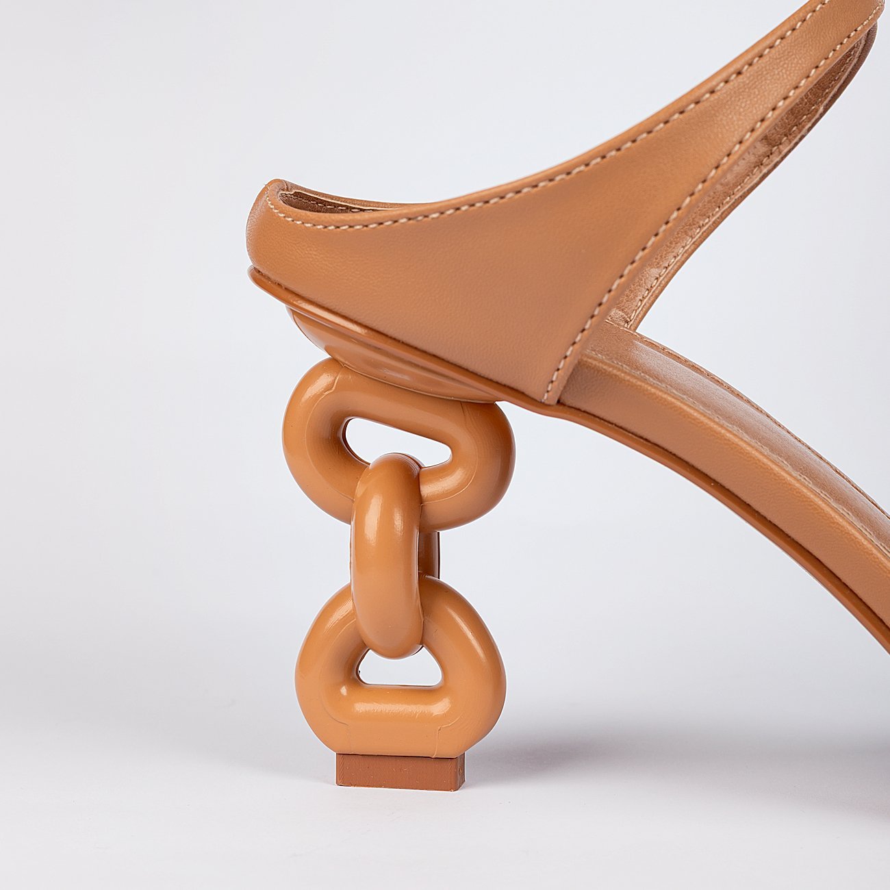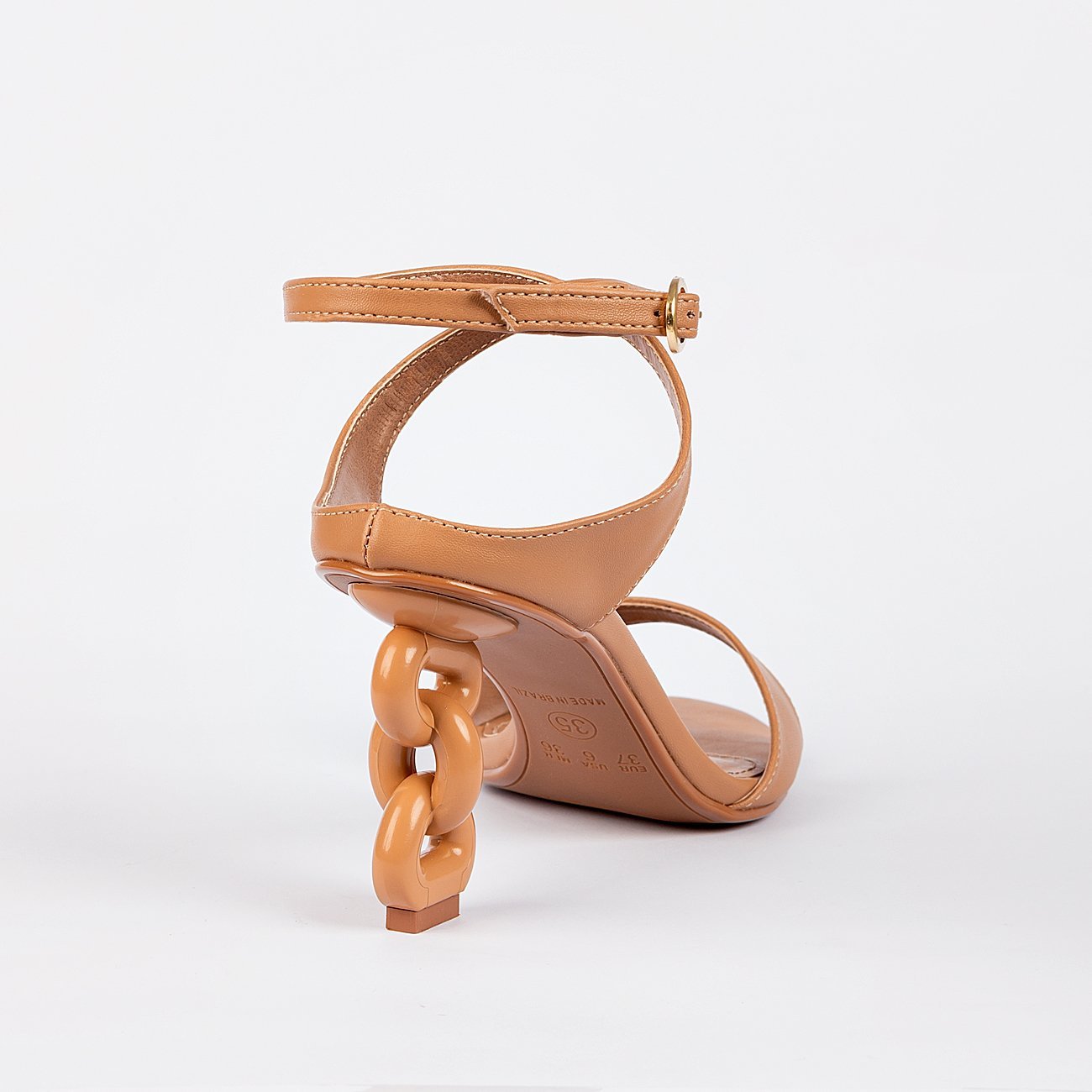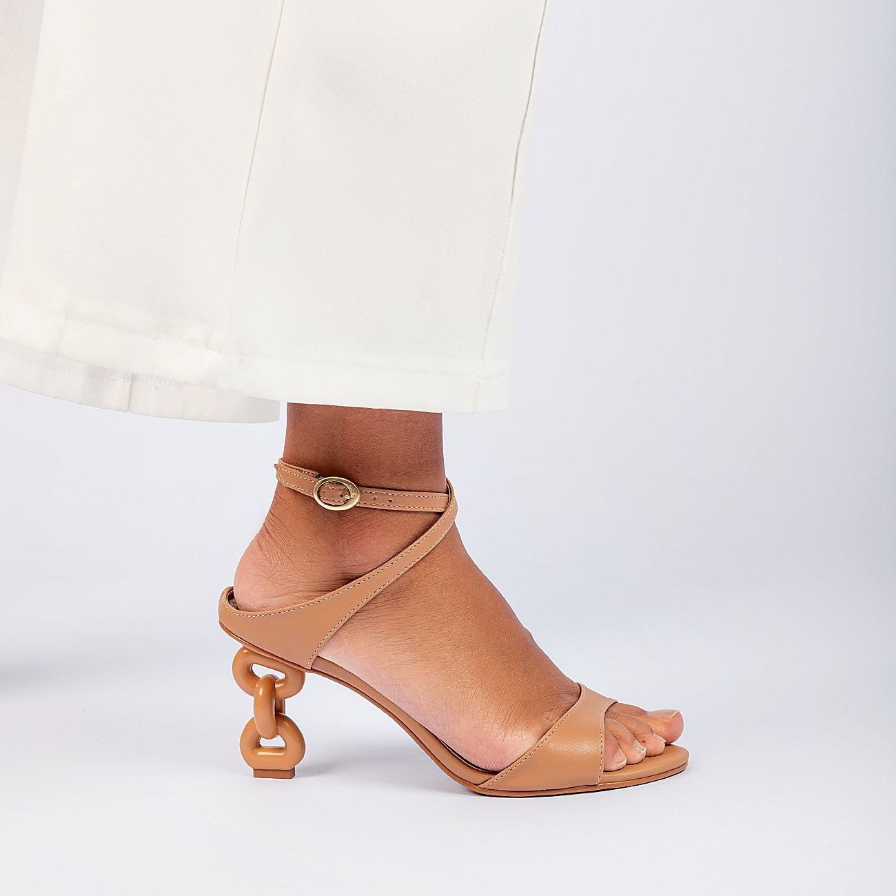 A sandália é a escolha certa para quem deseja unir elegância e personalidade. Com design minimalista na parte superior e o salto em elos revestidos, ela se torna um verdadeiro statement de estilo. A amarração no tornozelo adiciona segurança e sofisticação, tornando o modelo ideal para eventos e produções noturnas.