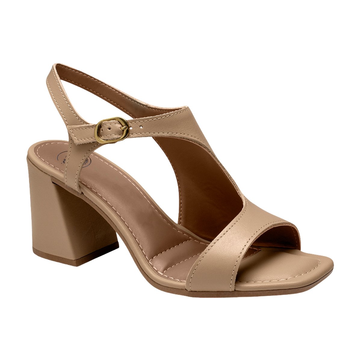 Ref: O salto médio grosso proporciona estabilidade ao caminhar, enquanto a palmilha macia oferece conforto mesmo em uso prolongado. Seu tom bege neutro facilita combinações, sendo ideal para compor looks casuais ou sociais.
