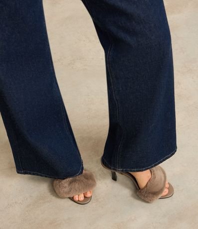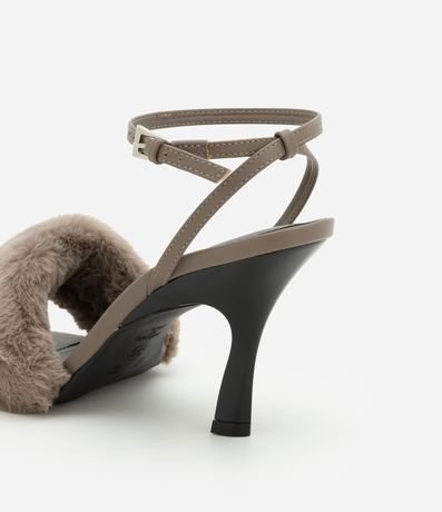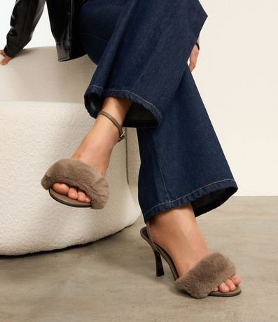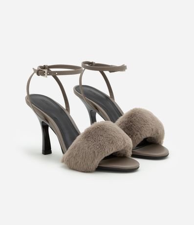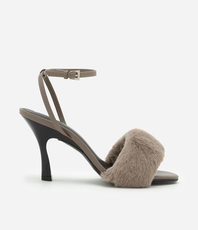 Sandália em PU com Pelo Fake e Salto Fino Diferenciado