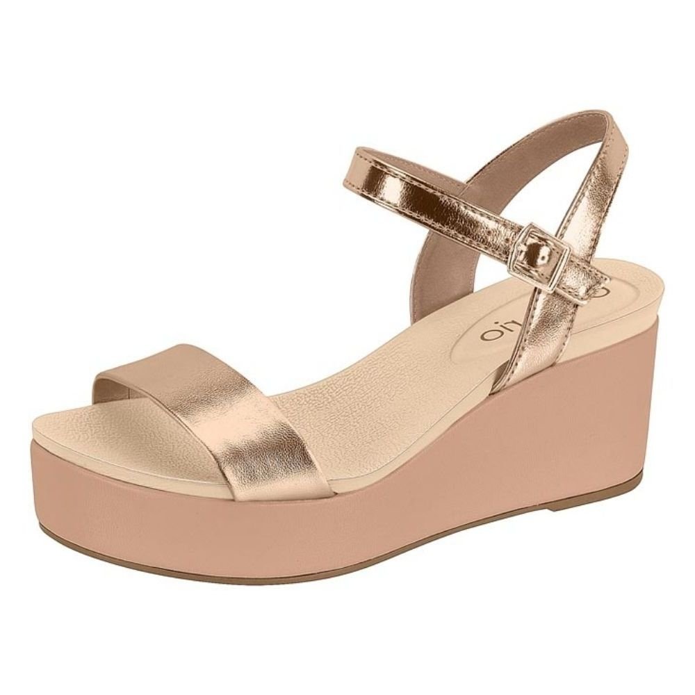 Ref: Sandália Feminina Anabela Ouro Rosado Nude Beira Rio 8407.135