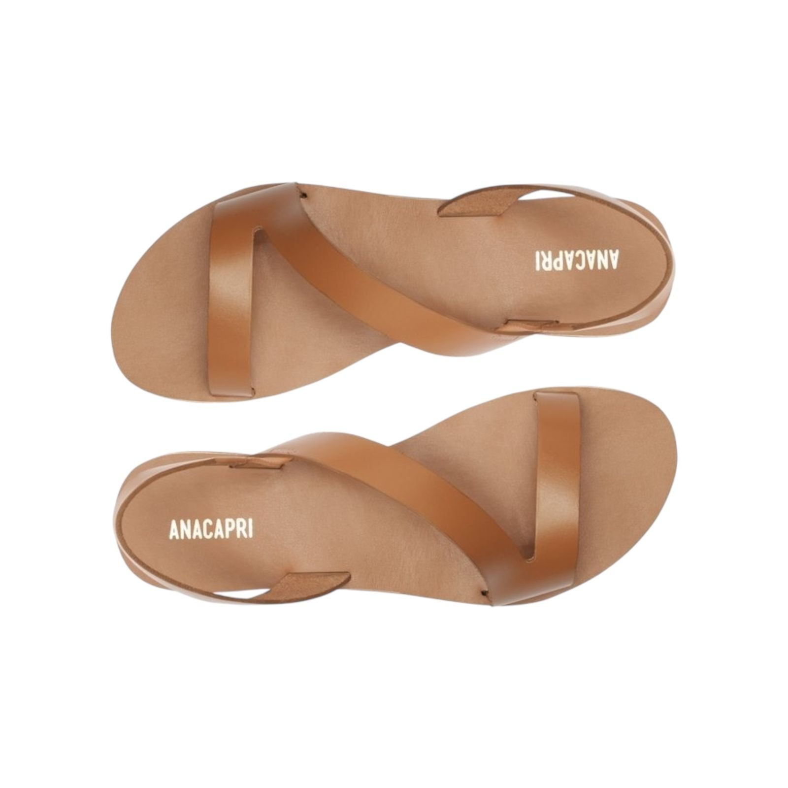 Ref: Sandália Monocolor Tira Curva Caramelo. Traz tira sobre os dedos unida por tira assimétrica em curva, que vai da gáspea, segue por todo o peito do pé e se une á tira elástica lateral que contorna o calcanhar. Traz palmilha da mesma cor com assinatura Anacapri. O modelo deixa dedos, laterais e calcanhar á mostra.