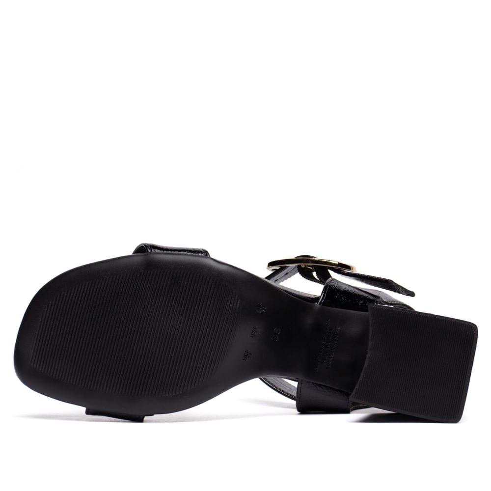 Diferencial: possui tira larga na frente e tira com fivela dourada no tornozelo