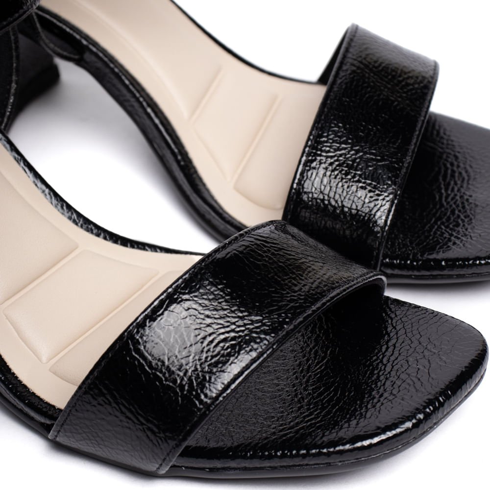 A palmilha em espuma macia e o solado em PVC antiderrapante proporcionam conforto prolongado e firmeza em cada passo. Ideal para looks casuais ou para ocasiões especiais, a Sandália Bebecê preta em verniz é a peça-chave para um visual elegante e moderno.