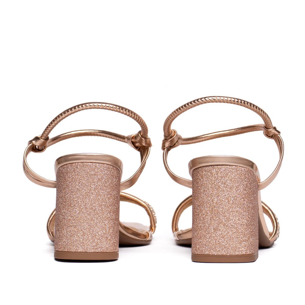 Sandália Feminina Beira Rio Salto Glitter Ouro Rosado