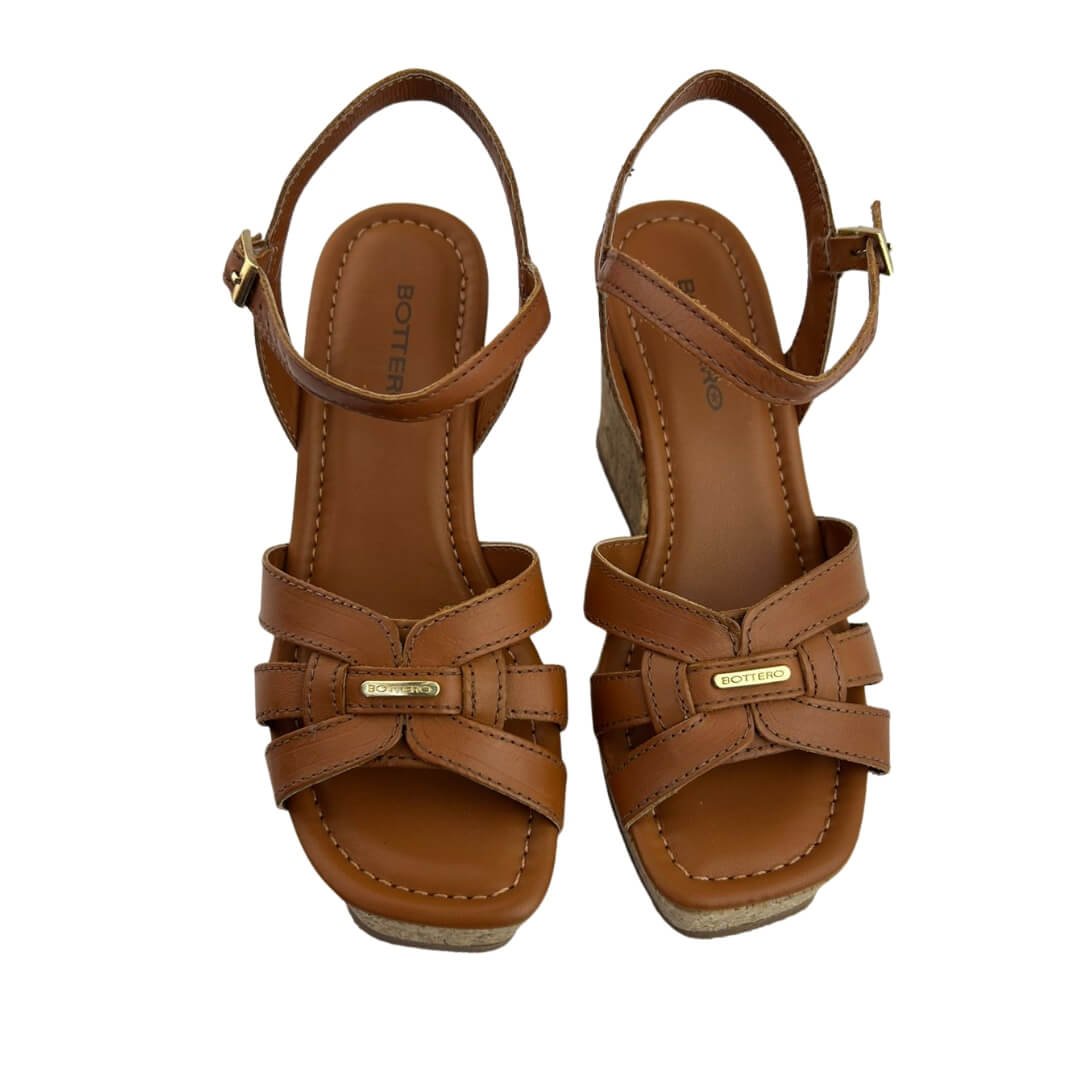 Palavras-chave: sandália feminina couro, sandália anabela, sandália conforto, Bottero sandália, sandália caramelo.