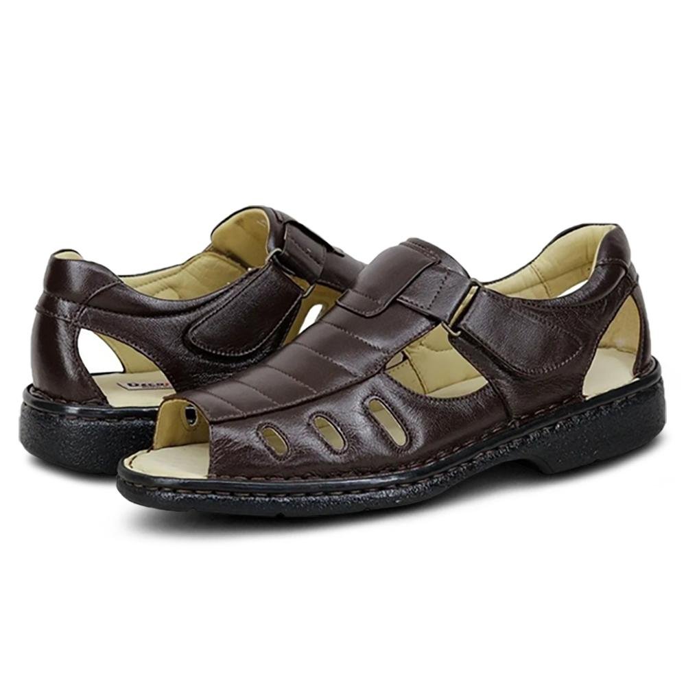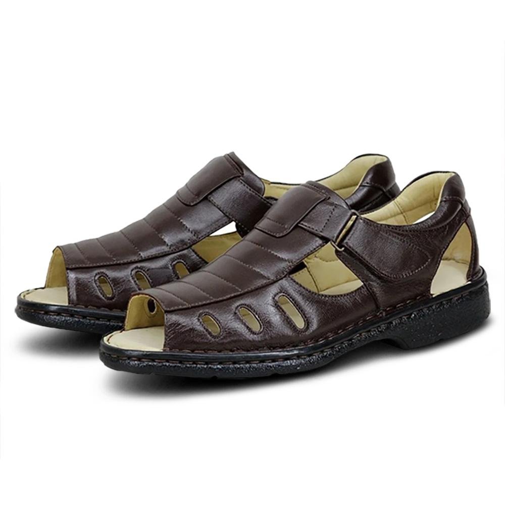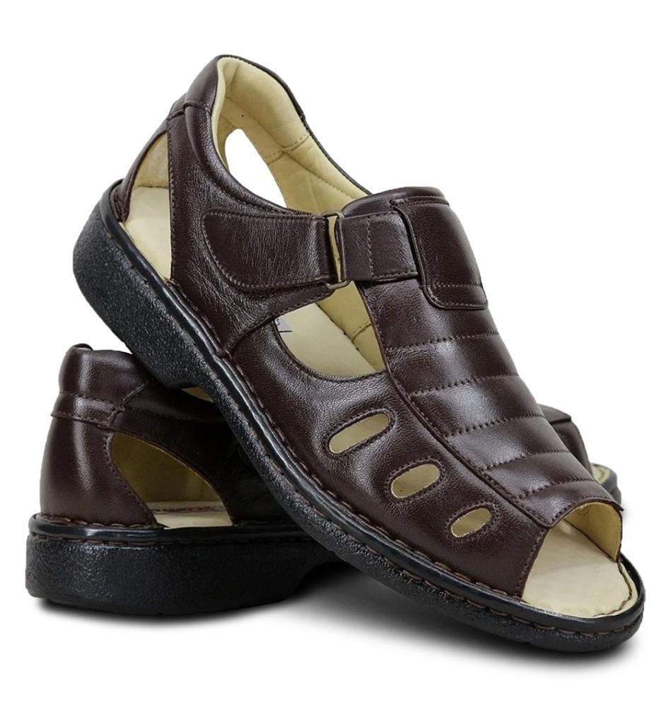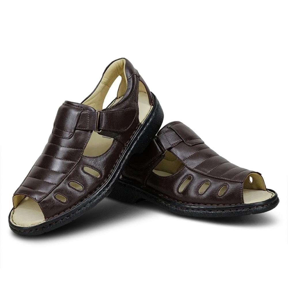 Esta sandália é desenvolvida com tiras em material sintético flexível e forro de toque suave que minimiza o atrito com a pele. A base apresenta palmilha com formato anatômico produzida em EVA de alta densidade, que auxilia na distribuição do peso corporal e oferece estabilidade em cada passo. O solado antiderrapante possui ranhuras que garantem segurança em superfícies lisas, enquanto o sistema de fechamento ajustável permite uma fixação precisa ao tornozelo. É um calçado leve e ergonômico, projetado para oferecer durabilidade e facilitar a transpiração dos pés durante o uso prolongado em climas quentes.