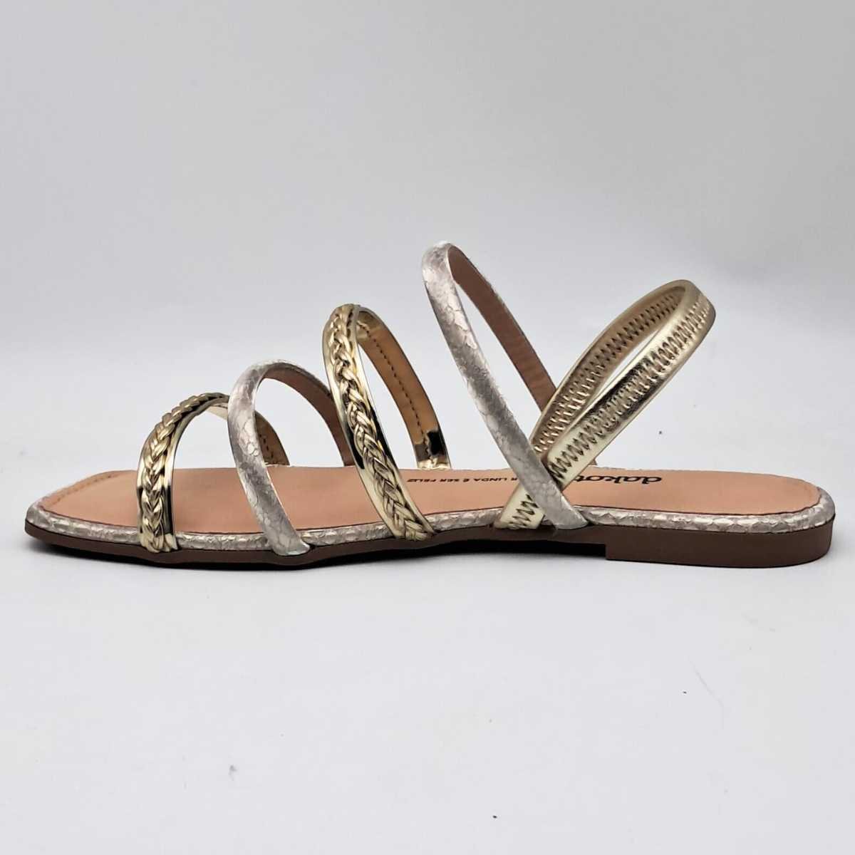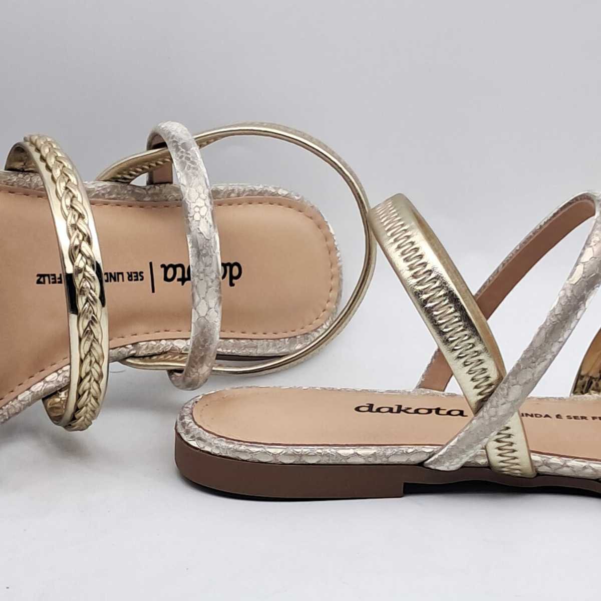 Ref: Ficha Técnica:Marca: DakotaModelo: Y8042Tipo: Sandália rasteirinha femininaMaterial externo: Sintético de alta qualidadeMaterial interno: Têxtil macio e respirávelPalmilha: Confortável e anatômicaSolado: Borracha leve e antiderrapanteFechamento: Tira ajustávelEstilo: Casual / Conforto / Dia a diaRasteira, com solado de aproximadamente 1,5 cm