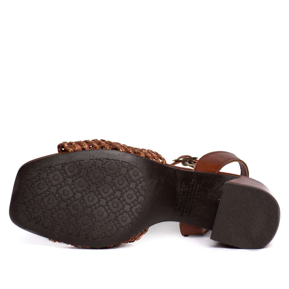 Ref: O cabedal em napa apresenta laço entrelaçado com detalhe dourado de design orgânico que abraça os pés e que adiciona um toque sofisticado e moderno ao calçado. O fechamento em fivela, posicionado na parte posterior por tiras entrelaçadas, garante ajuste seguro e confortável. O salto bloco de 8 cm oferece estabilidade e conforto, tornando a sandália ideal para uso prolongado sem abrir mão do estilo. Sua combinação de cores marrom e bege proporciona versatilidade, permitindo compor diferentes looks, do casual ao mais refinado.