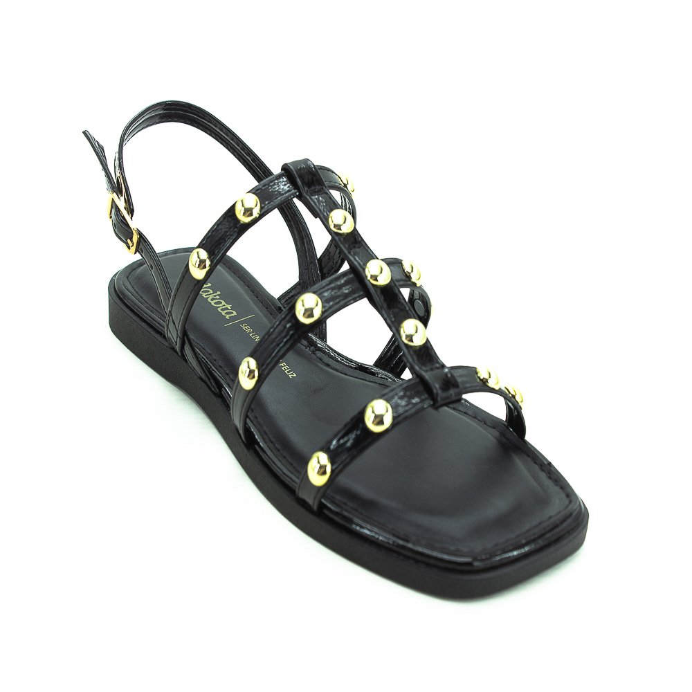 Ref: A Sandália Dakota Rasteira Preta da coleção Primavera/Verão 2024 é a escolha perfeita para quem busca praticidade e estilo. Com seu design moderno e versátil, ela se adapta a diversas ocasiões, do dia a dia ao lazer. Suas tiras finas envolvem os pés de forma delicada, enquanto as aplicações metalizadas adicionam um toque de sofisticação. Além disso, o fechamento em fivela no tornozelo garante um ajuste perfeito e prático. Ideal para combinar com jeans, vestidos leves e saias, essa sandália é a peça-chave para criar looks descontraídos e cheios de personalidade. Para um visual mais casual, combine-a com shorts jeans e uma camiseta básica. Já para um look mais arrumadinho, aposte em um vestido midi e acessórios delicados. Seus pés vão agradecer o conforto proporcionado pela sola macia e leve de 1,5 cm, enquanto você arrasa por onde passar!