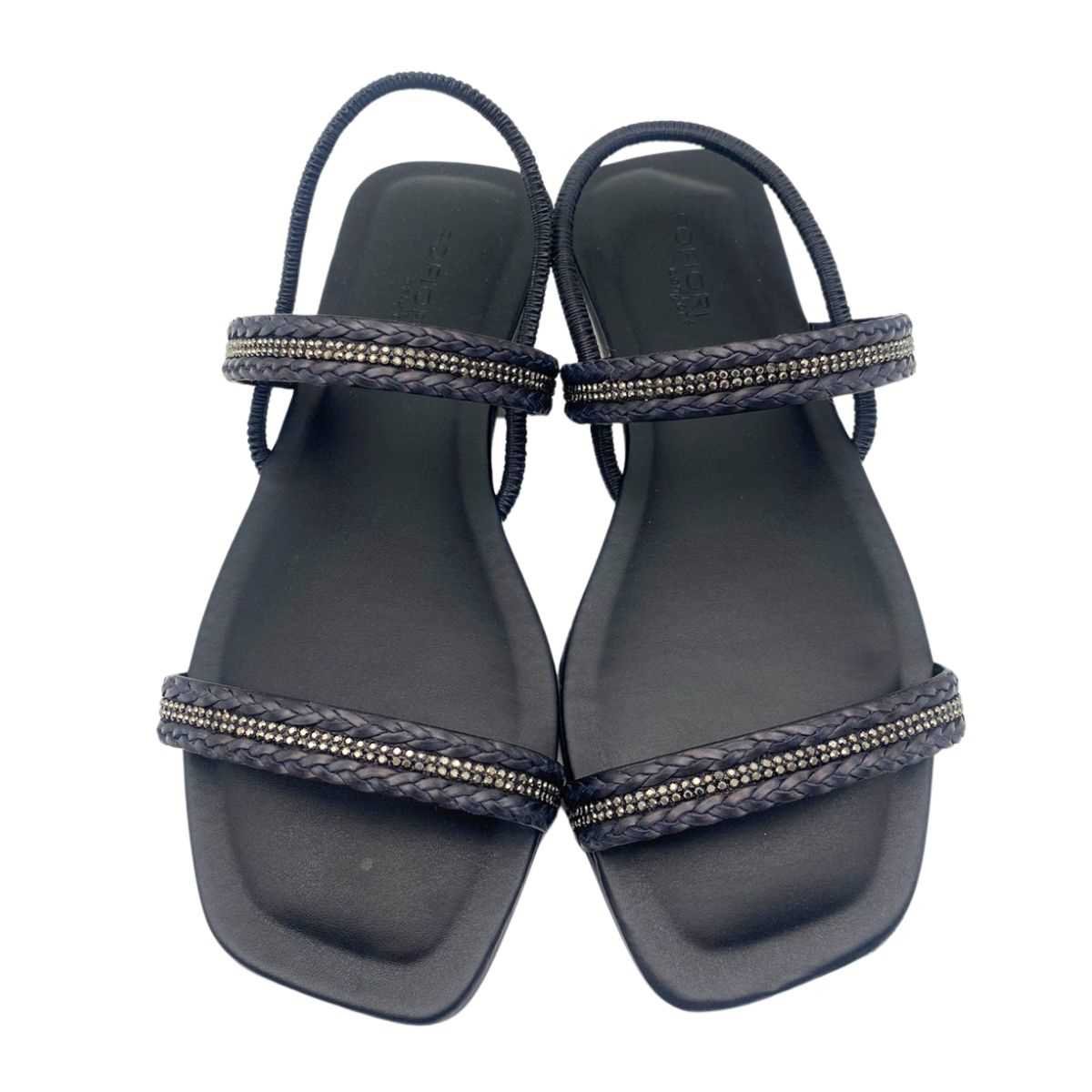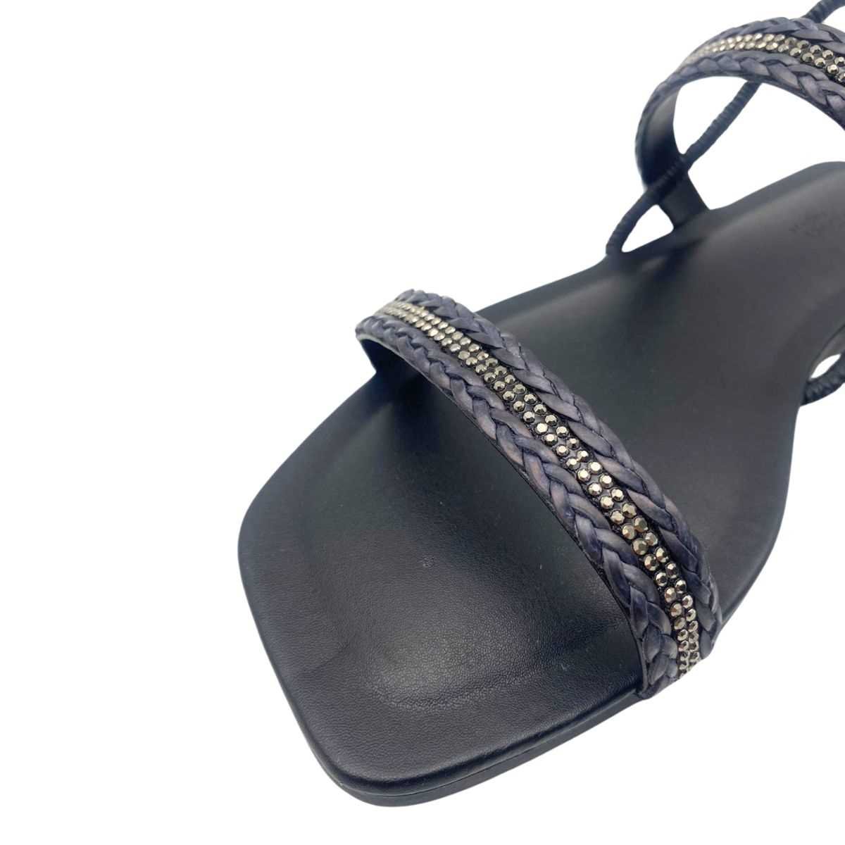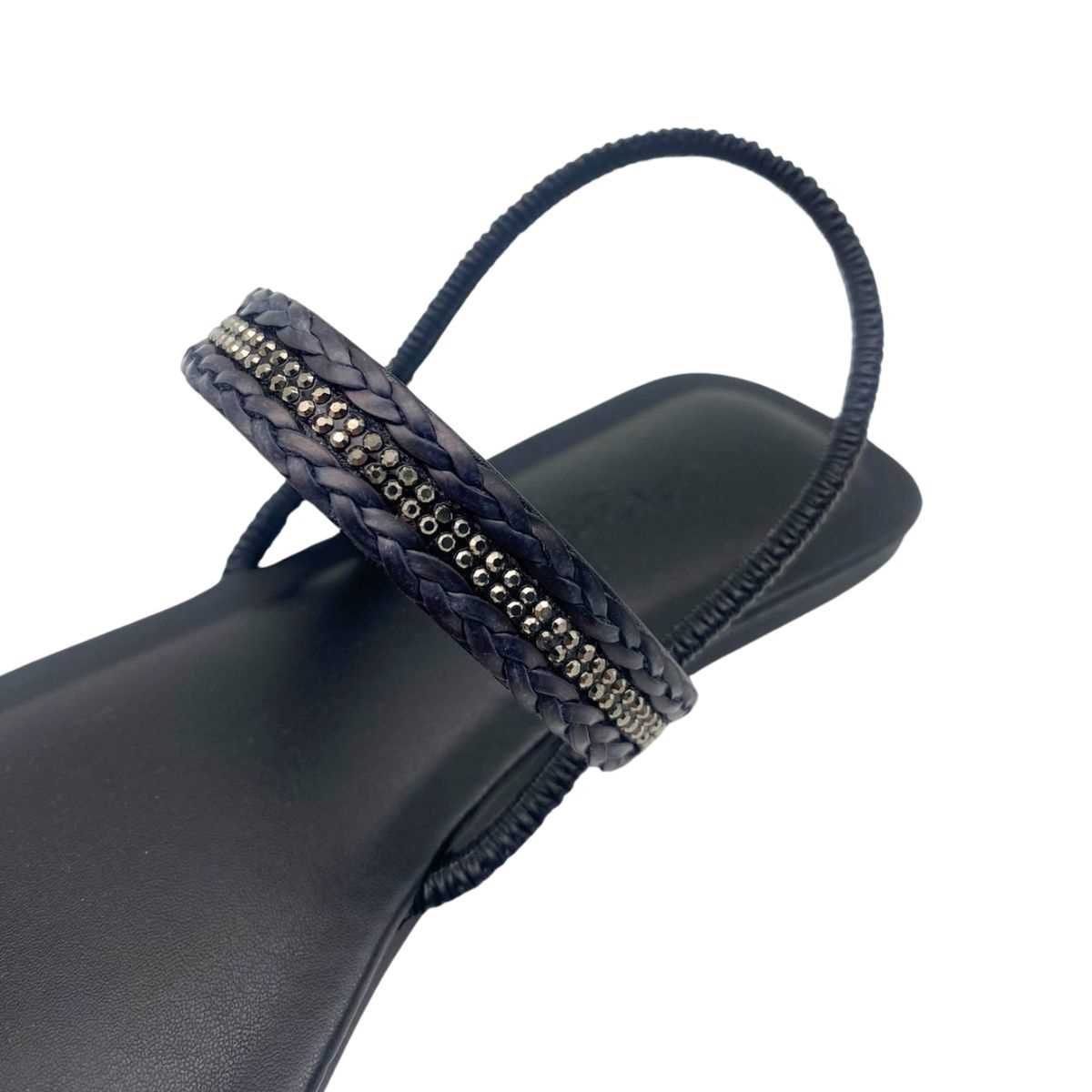 Design: Tiras trançadas com detalhes de pedrarias brilhantes
