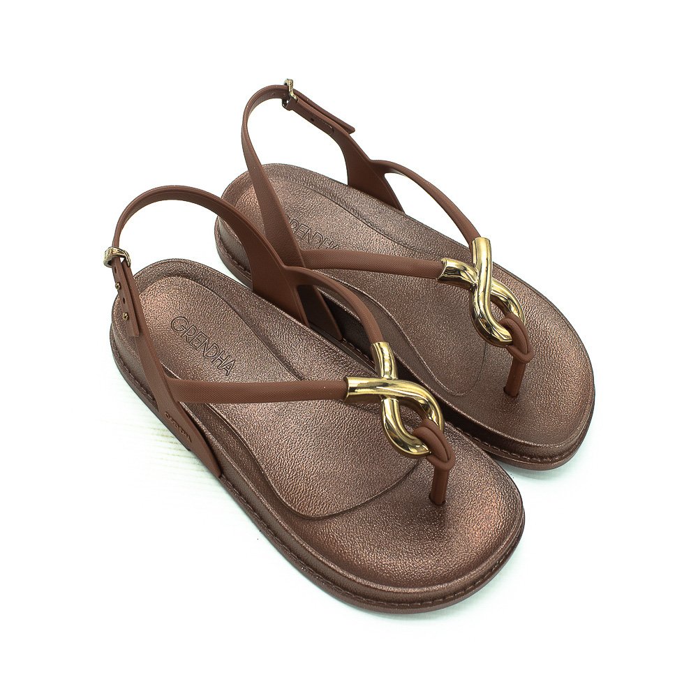 Vindo de uma oportunidade mapeada tanto pelo mercado, quanto pela nossa pesquisa, a nova Grendha Abraçar Sandália, adapta códigos da joalheria contemporânea no seu design. Inspirada em joias orgânicas imponentes e em acabamentos mistos de banhos metálicos, jateados de areia, cravejados e até glitter, a proposta carrega uma cartela rica em acabamentos. Com linhas de cabedal minimalistas, o protagonismo é da joia, que assume a frente do pé incorporada no design com tiras estilo correntes tubulares.