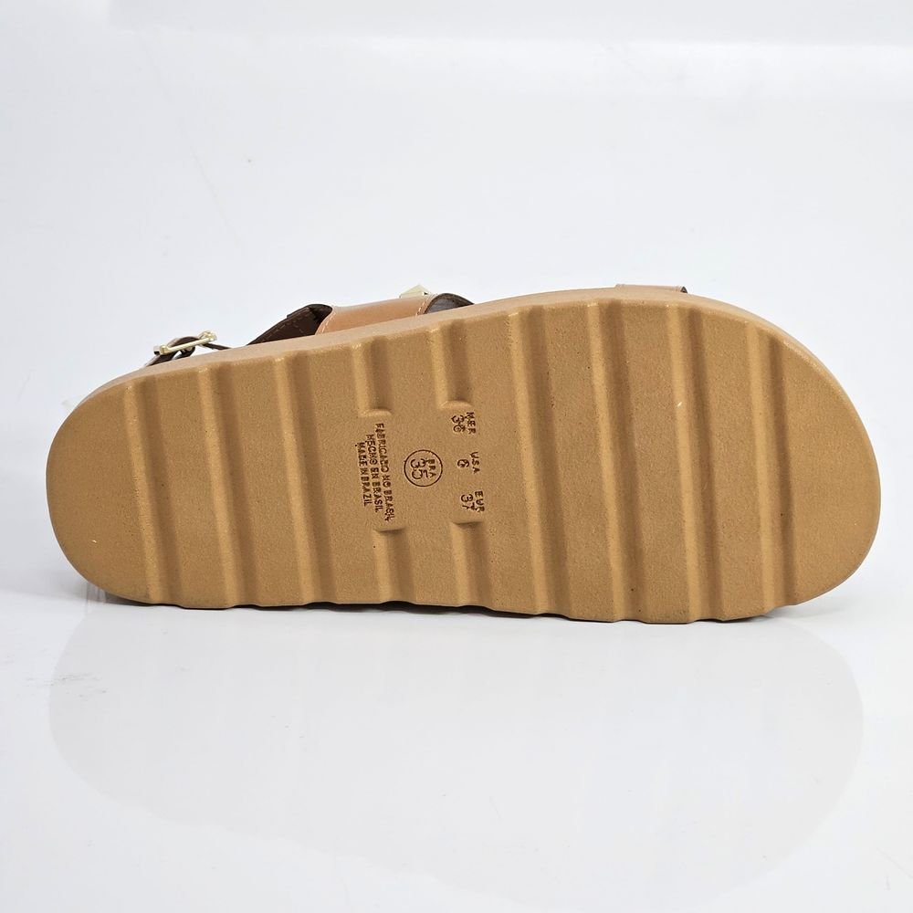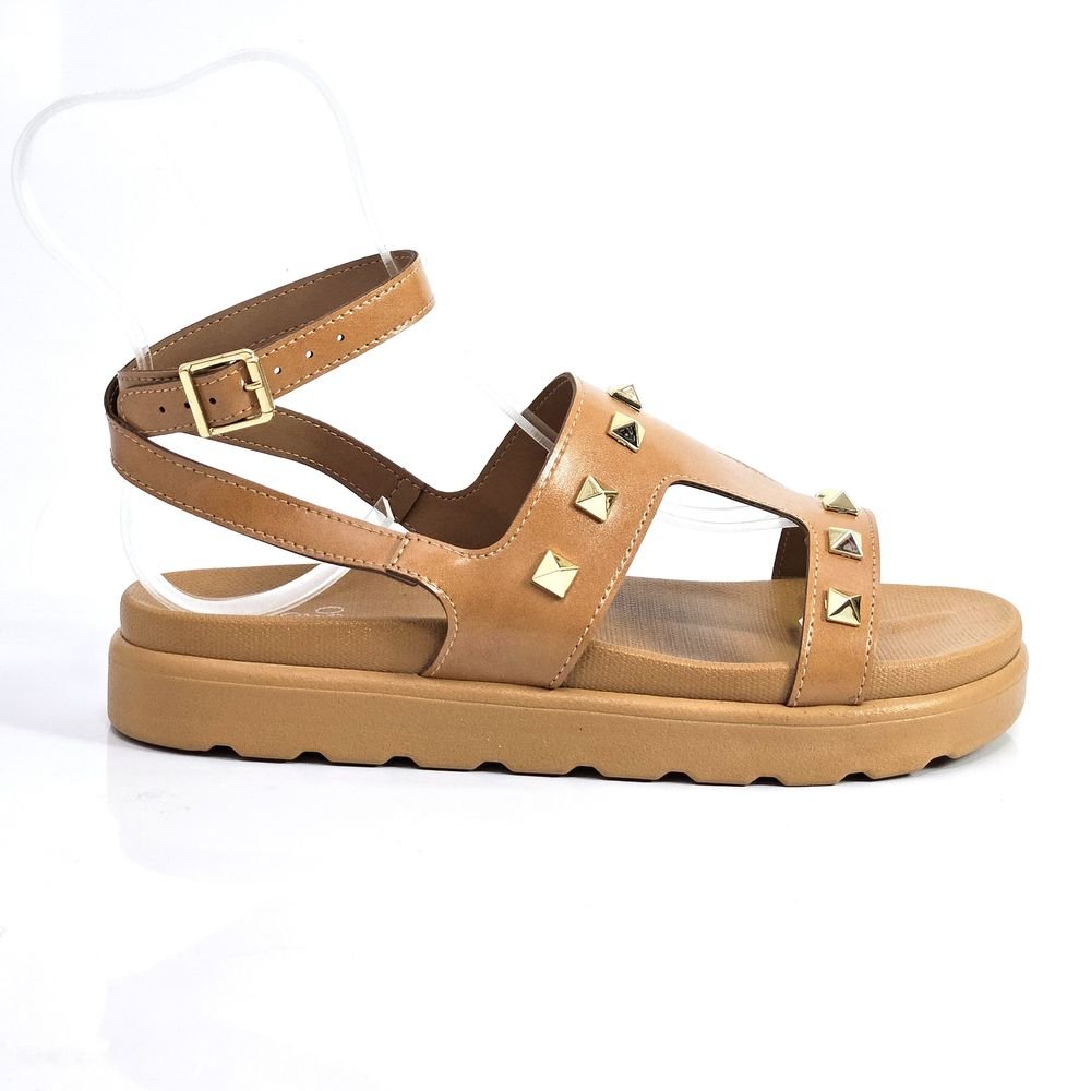 Adote um estilo moderno e cheio de atitude com a Sandália Feminina Flat Improviso, a escolha perfeita para quem busca conforto máximo sem abrir mão de um visual marcante. Ideal para o uso diário, passeios e festivais, esta sandália combina a praticidade do solado flat tratorado com detalhes rocker-chic. Confeccionada em material sintético de alta durabilidade na cor Mel (um tom de caramelo vibrante), ela se destaca pelas tiras adornadas com tachas piramidais douradas, que injetam personalidade na peça. O fechamento em tornozeleira ajustável garante segurança e um toque charmoso, transformando esta sandália em um item indispensável para os dias de calor.
