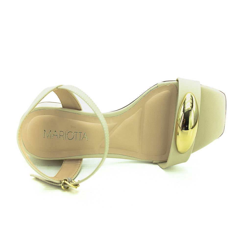 Sandália Mariotta Belle em Napa Like Bege, com salto Baixo que combina estilo e conforto. Apresenta taloneira Confort para um uso prolongado sem incômodos, além de um enfeite e uma elegante fivela dourada, ideal para compor looks sofisticados tanto para o dia quanto para a noite.
