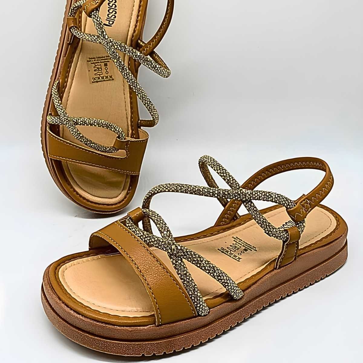 A Sandália Mississipi Flat Brilho MF031 é versátil e combina com diferentes estilos. Use com vestidos, shorts, saias ou calças para um visual leve e moderno. Ideal para dias quentes, proporciona conforto e elegância em qualquer ocasião, seja no trabalho, em passeios ou eventos casuais.
