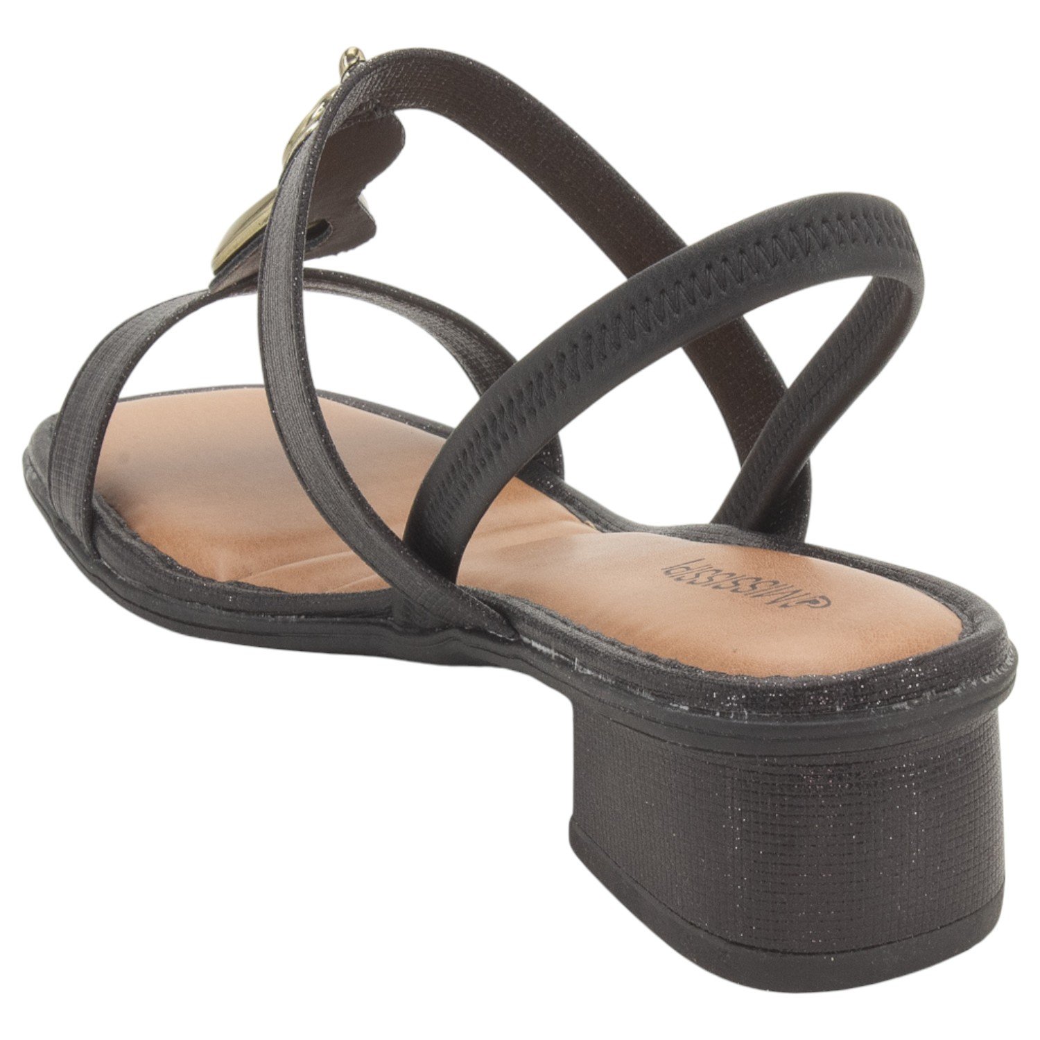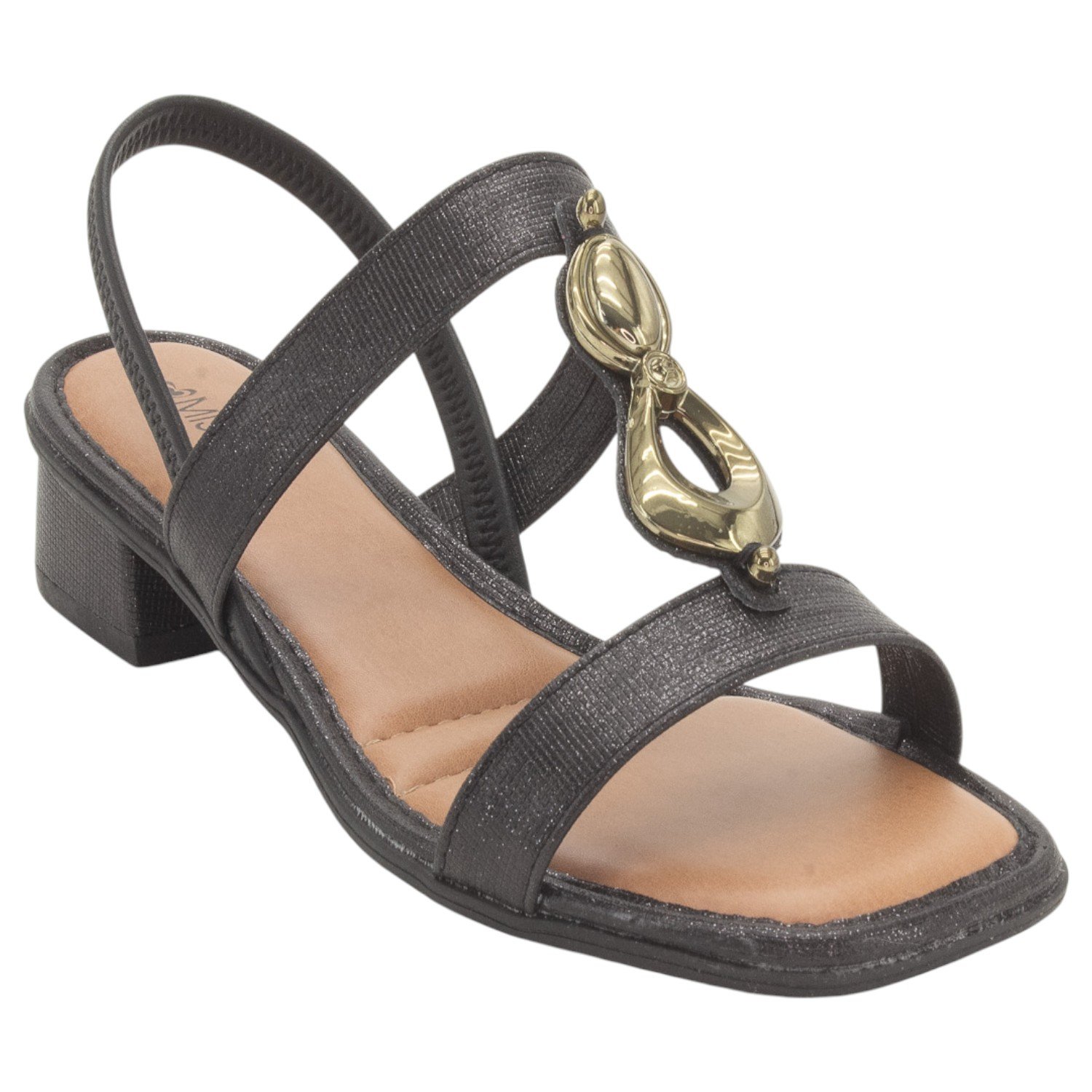 Ref: A Sandália Mississipi de Salto Bloco Preta une elegância e conforto em um design sofisticado que valoriza cada detalhe. Com tiras finas que envolvem suavemente os pés e uma peça metalizada que adiciona um toque irresistível de glamour, ela se destaca pelo bico de contorno quadrado e pelo salto bloco de 3,5 cm, que garantem estabilidade e um caminhar seguro. Confeccionada em material sintético com textura sutil, eleva com facilidade qualquer produção, seja para o trabalho, encontros casuais ou momentos especiais. Pensada para a mulher moderna que preza pela praticidade, conta com calce fácil graças à tira maleável que se ajusta ao calcanhar sem a necessidade de fechamentos, proporcionando rapidez no vestir e muito mais conforto. Leve e versátil, oferece uma sensação de liberdade em cada passo, permitindo longos períodos de uso sem incômodo. Mais do que um calçado, é um acessório que transmite confiança, autoestima e sofisticação. Ideal para compor looks com vestidos, saias ou calças, esta sandália é a escolha perfeita para quem deseja unir estilo, praticidade e bem-estar.