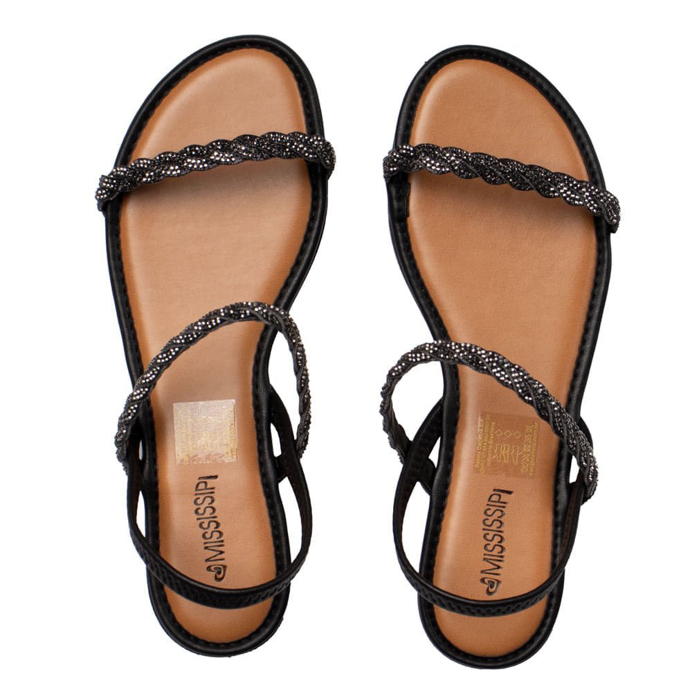 Sandália Feminina Mississipi Rasteira Brilhos Preto