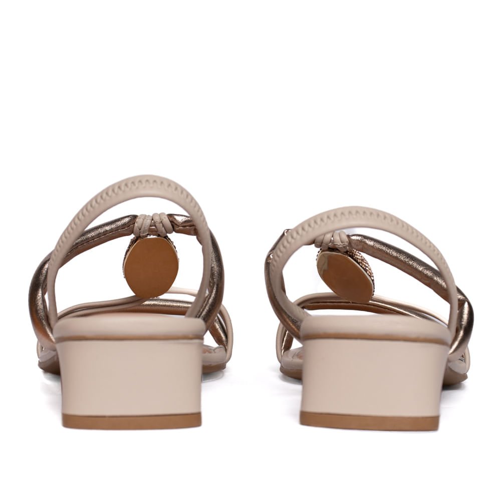 Nome do produto: Sandália Feminina Mississipi Salto Bloco Strass Bege