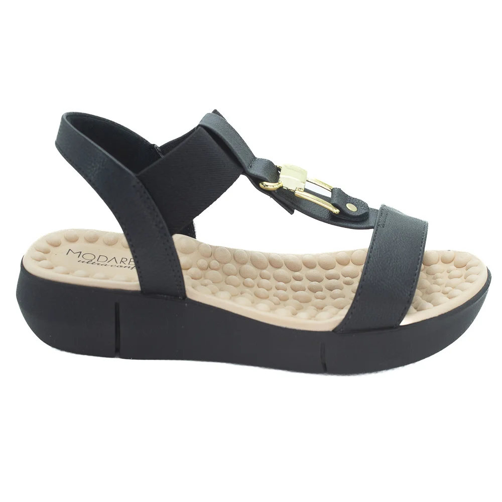 Ref: A Sandália Feminina Modare Ultraconforto Palmilha Massageadora 7142.139 combina estilo, conforto e tecnologia, sendo perfeita para acompanhar a rotina com praticidade e bem-estar. Confeccionada em material sintético de alta qualidade e com forro macio, oferece um cabedal moderno com tiras elásticas que garantem ajuste flexível, facilitam o calce e proporcionam um encaixe firme sem apertos. Seu grande diferencial está na palmilha Reflex Sense em EVA com pontos massageadores e tecnologia Ultracomfy, que alia maciez, absorção de impacto e estímulo à circulação sanguínea. Conta ainda com espuma no calcanhar, calcanheira acolchoada, ponto de conforto no joanete e forro antibacteriano, garantindo leveza e proteção ao longo do dia. O solado em PVC com frisos antiderrapantes traz segurança e estabilidade, enquanto o salto baixo de 3,5 cm oferece equilíbrio entre elegância e praticidade. O design é valorizado por detalhes em dourado, que acrescentam sofisticação ao visual.Com tecnologias inovadoras, como Palmilha Dry Tech, Gel Tech e sistema de calce fácil, esta sandália é a escolha ideal para quem busca unir conforto prolongado, estilo versátil e durabilidade em todas as ocasiões.