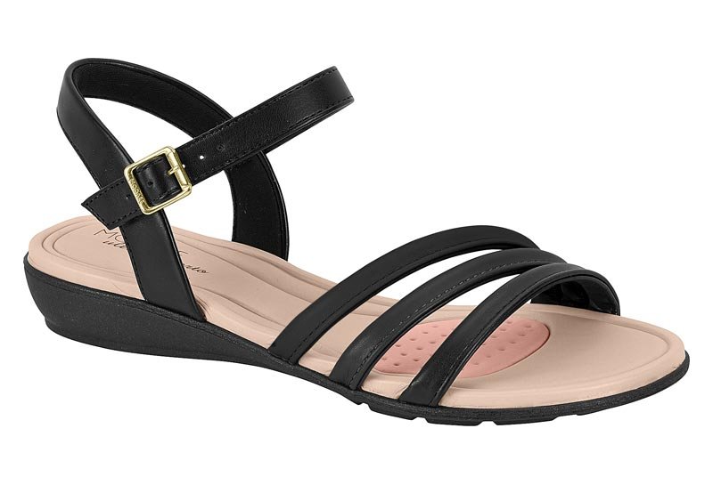 A palmilha macia com tecnologia de absorção de impacto proporciona sensação de leveza durante todo o uso. O salto anabela baixo traz equilíbrio e conforto, tornando essa sandália perfeita para a rotina, trabalho ou momentos casuais.