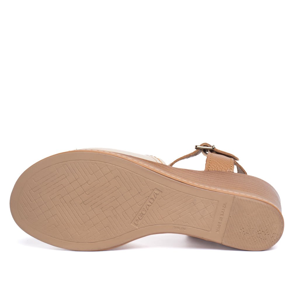 Nome do produto: Sandália Feminina Pegada Couro Anabela Off White/Bege