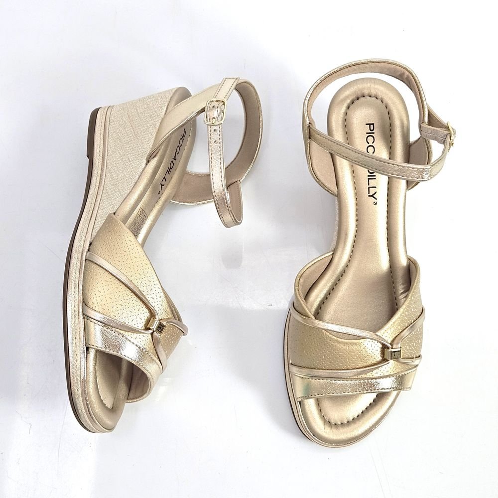 A Sandália Feminina Piccadilly Anabela é a escolha perfeita para mulheres que buscam elegância sem abrir mão do conforto. Com um design sofisticado e atemporal, esta sandália na cor dourada é ideal para compor looks de verão, festas e eventos casuais. O modelo anabela oferece a altura perfeita para alongar a silhueta, ao mesmo tempo em que proporciona total estabilidade e segurança ao caminhar. A sandália possui tiras em um lindo tom de dourado metalizado, com uma tira em dourado texturizado com detalhes vazados, que adiciona um toque de modernidade e requinte. O fechamento com fivela ajustável no tornozelo garante um calce seguro e prático. Além de linda, a sandália Piccadilly é conhecida pela tecnologia de conforto, que faz com que você se sinta bem do início ao fim do dia.Referência: 408232