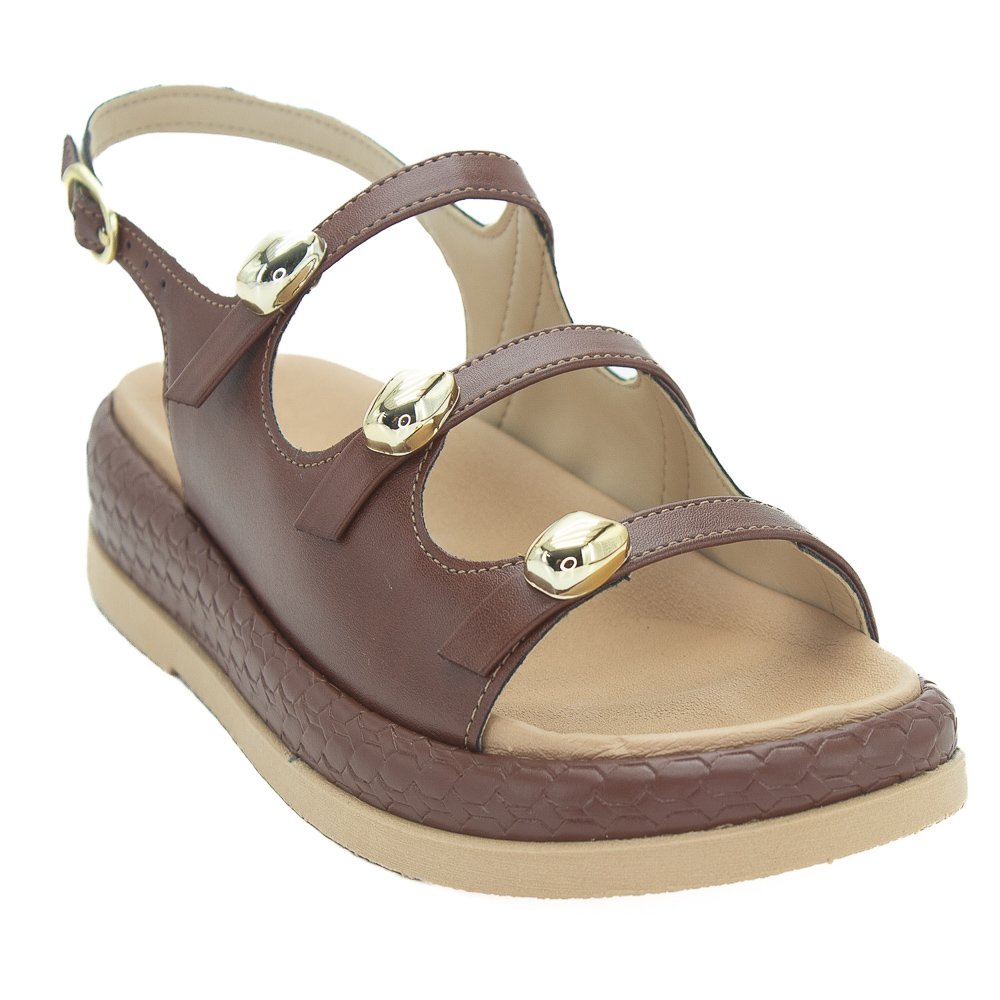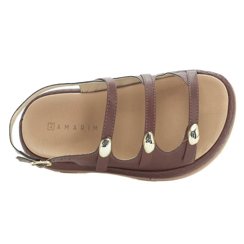 Ref: A Sandália Ramarim combina estilo, conforto e praticidade em um único modelo. Seu design moderno apresenta três tiras frontais com aplicações metalizadas em dourado, acrescentando sofisticação ao visual, enquanto a cor marrom neutra permite combinações versáteis com diferentes looks. O ajuste lateral com fivela proporciona segurança e praticidade ao caminhar, e o solado trabalhado emborrachado com textura garante estabilidade e personalidade. A palmilha em EVA macio segue a anatomia do pé, oferecendo conforto durante o uso prolongado. Ideal para passeios, compromissos do dia a dia e produções casuais, esta sandália papete é perfeita para quem busca leveza, elegância e bem-estar em cada passo.