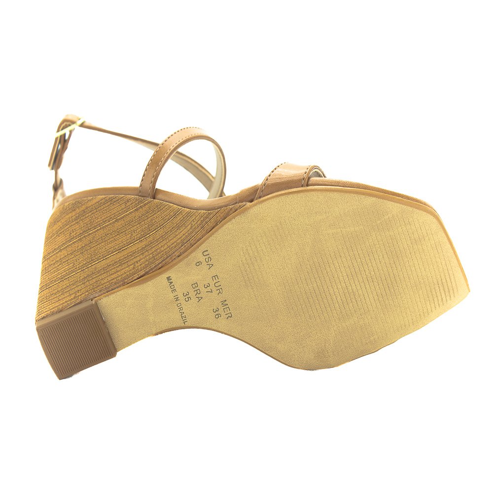 Ref: A Ramony Calçados nasceu em 1993, da vontade do casal de empresários Ricardo Zorn e Solange Cholet Zorn em empreender no ramo calçadista. À frente do desenvolvimento de seus produtos, Débora, uma das filhas do casal que cresceu acompanhando os seus pais na empresa, jovem e focada em levar beleza e sofisticação às consumidoras buscando sempre estar alinhada as tendências principais da moda internacional, o que tornou a marca referência do mercado em design e qualidade. A Sandália Ramony une sofisticação e modernidade em um modelo que valoriza qualquer produção. Confeccionada em material sintético de qualidade, traz tiras finas no cabedal com detalhe de aplicação em pedra cristal, que adiciona brilho e elegância ao visual. O fechamento é por fivela lateral ajustável, garantindo melhor firmeza ao caminhar. O destaque fica por conta do salto anabela com acabamento em textura amadeirada, que oferece altura e conforto em uma combinação perfeita. Com palmilha macia e solado emborrachado, é a escolha ideal para quem busca estilo e praticidade em ocasiões casuais ou sociais.
