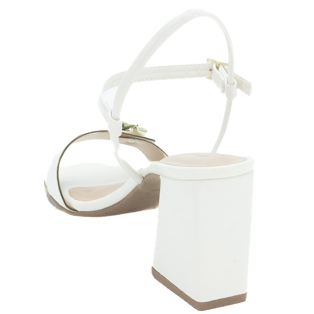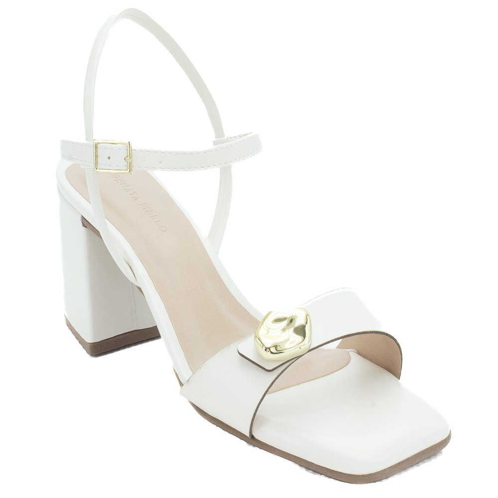 Ref: A Sandália Feminina Renata Mello 8461.90906 Off White é um calçado elegante e moderno, ideal para compor visuais sofisticados e contemporâneos. Destaca-se pelo design clean na cor Off White (branco quebrado), o que a torna extremamente versátil e fácil de combinar com diversas paletas de cores e estilos, desde um visual casual até um mais formal. Ela apresenta um salto bloco de altura média, que oferece maior conforto e estabilidade ao caminhar, sendo uma excelente opção para quem busca elegância sem abrir mão do bem-estar. A sandália possui uma tira única larga sobre os dedos, com um detalhe metálico dourado em formato orgânico que confere um toque de charme e sofisticação ao modelo. O fechamento é feito por uma tira fina no tornozelo com fivela ajustável na cor dourada, garantindo um ajuste seguro e personalizado ao pé. Além disso, o bico é de formato quadrado, seguindo uma tendência atual da moda calçadista. Confeccionada com materiais sintéticos de qualidade, essa sandália é perfeita para diversas ocasiões, como festas, eventos ou mesmo para dar um toque de classe a um look de trabalho ou passeio.