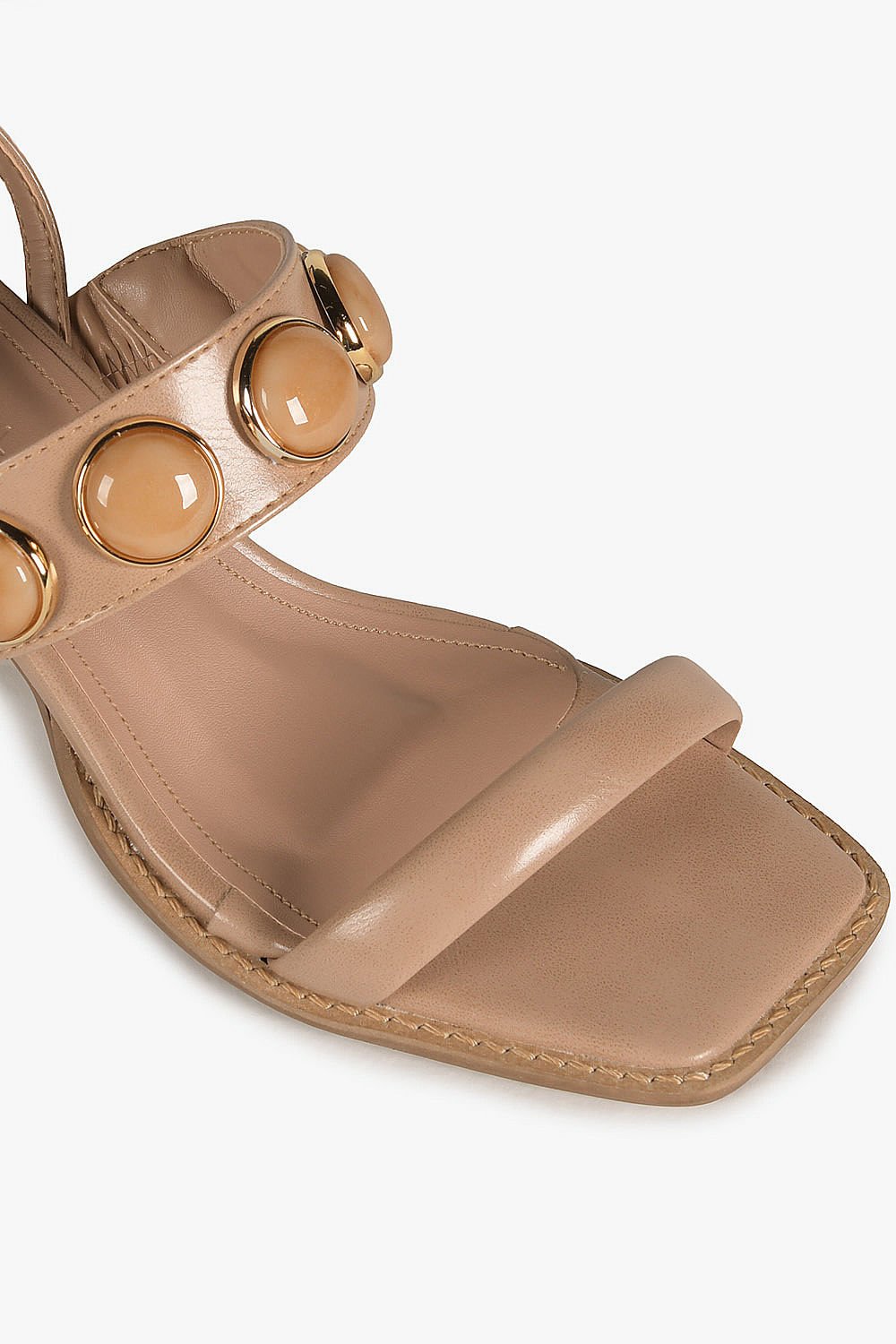 A Sandália Feminina Salto Alto Mundial Jaqueline conta com estilo sofisticado e moderno. Possui salto médio grosso, bico quadrado e tiras finas na parte frontal. O destaque fica por conta dos detalhes arredondados decorativos na tira superior, que conferem um toque elegante ao modelo. Conta ainda com fechamento por fivela ajustável no tornozelo, garantindo firmeza e conforto ao caminhar. É ideal para compor looks elegantes e versáteis.