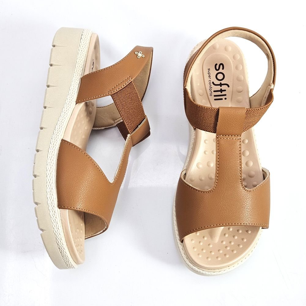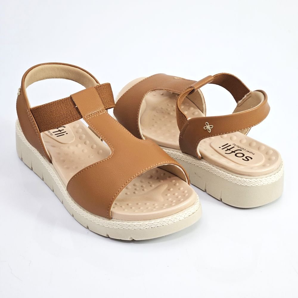 Perfeita para o verão, a Sandália Feminina Anabela com Elástico é a escolha ideal para unir conforto e estilo de forma prática. Este modelo, na cor âmbar, é confeccionado em material de alta qualidade, garantindo durabilidade. O design do cabedal conta com tiras que proporcionam firmeza e elegância. O destaque fica por conta do salto anabela, com aproximadamente 4 cm, que é todo contornado por um acabamento de corda, adicionando um toque rústico e moderno. O calce é prático e seguro graças à tira elástica lateral. A palmilha em EVA proporciona uma sensação superconfortável e bem-estar durante todo o uso. É a sandália ideal para compor looks casuais, passeios ou eventos mais descontraídos.