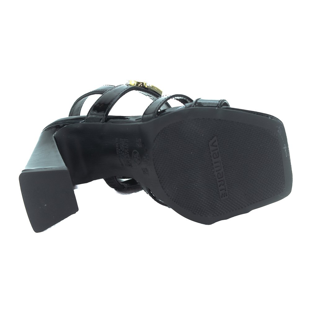 Esta sandália de salto alto da Via Marte combina elegância e praticidade. Possui salto grosso e bico quadrado, que garantem mais estabilidade e conforto ao caminhar. O modelo apresenta tiras finas com acabamento em elástico, proporcionando ajuste prático e seguro ao pé. O detalhe em destaque fica por conta da fivela decorativa em formato de ?V?, que adiciona um toque moderno e sofisticado ao visual. Ideal para compor looks estilosos tanto para o dia quanto para a noite.