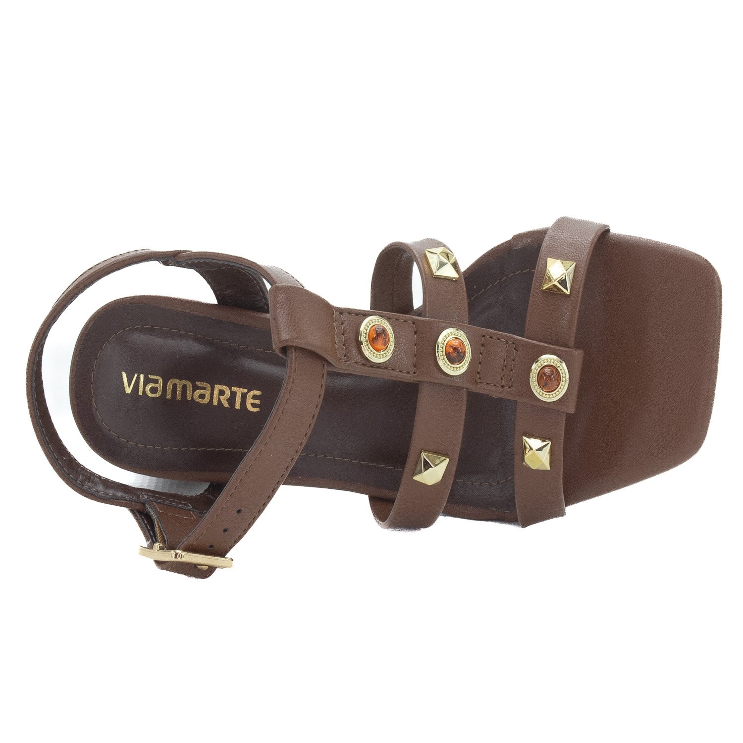 Ref: A Sandália Via Marte Salto Médio Bloco 171-035-01 é a combinação ideal de conforto, estilo e autenticidade. Inspirada no estilo Boho Chic, apresenta design moderno com bico quadrado e tiras largas adornadas por tachas metalizadas coloridas, que trazem um toque marcante e cheio de personalidade. O modelo conta com calcanhar aberto e fechamento em fivela metálica, proporcionando ajuste seguro e visual elegante. Confeccionada em material sintético tipo napa casual, possui forro em PU, solado em PVC nitrílico e salto médio bloco de 6,5 cm, que garante estabilidade e conforto em cada passo. Versátil e sofisticada, é perfeita para compor produções cheias de atitude, acompanhando com charme desde looks casuais até combinações mais elaboradas.