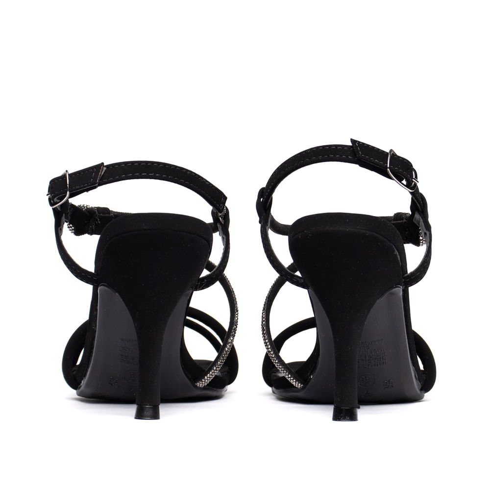 Sandália Feminina Via Marte Nobuck Salto Alto Strass Preto