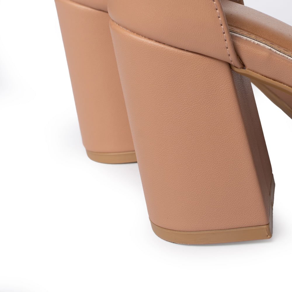 Ref: Seu design conta com tira frontal larga que envolve os dedos com delicadeza, além da parte traseira fechada com tira ajustável e fivela, proporcionando segurança e um ajuste personalizado aos pés. O interior da sandália é revestido com material sintético macio, que proporciona conforto ao caminhar. A palmilha com espuma oferece uma camada extra de suavidade, enquanto o salto grosso eleva a silhueta com estabilidade.