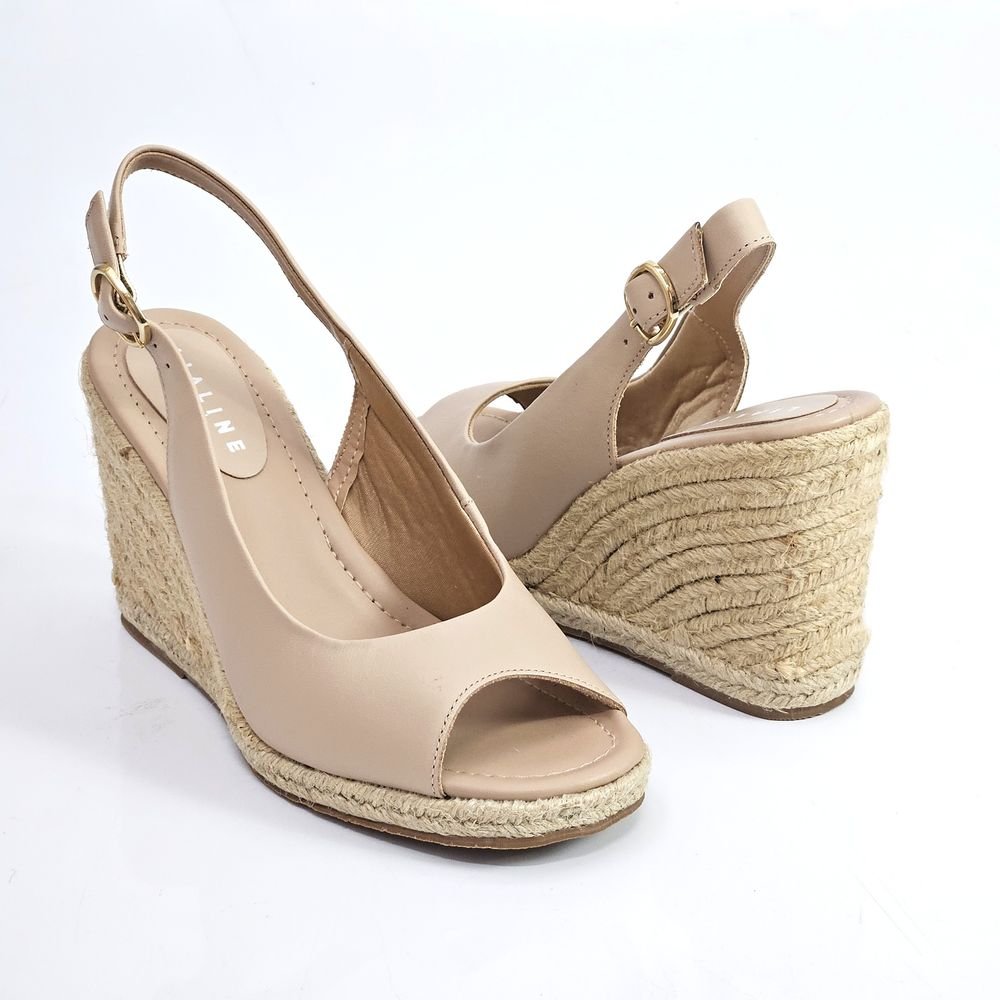 Sinta a brisa do verão com a Sandália Feminina Lia Line Anabela, um modelo que combina o estilo rústico e sofisticado, ideal para compor looks de passeios, viagens, ou eventos diurnos. Esta sandália apresenta o clássico design slingback (tira no calcanhar) e peep toe (abertura frontal), garantindo segurança e delicadeza. Ela é confeccionada em Couro Napa de alta qualidade na cor New Whisky (tom de caramelo/marrom claro), oferecendo um toque premium ao calçado. O grande destaque é o salto anabela alto, totalmente revestido em corda, que evoca o charme da moda mediterrânea, proporcionando conforto excepcional e estabilidade, graças à sua base larga.Referência: 240272082