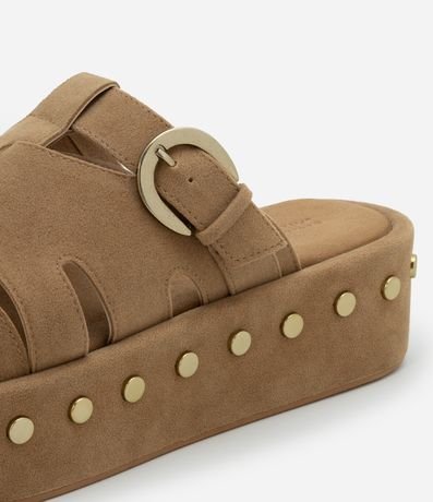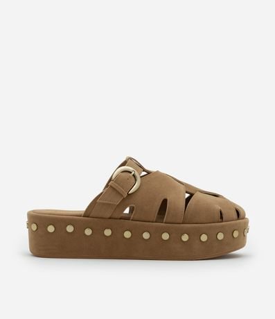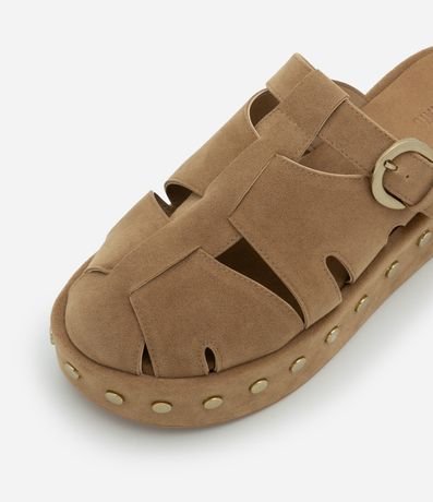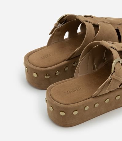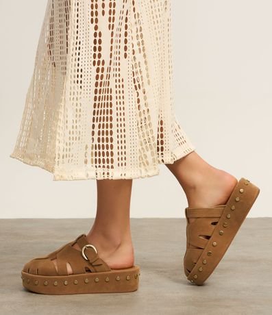 Ref: Sandália fisherman feminina, conhecida também pela sua tradução "pescador", confeccionada em PU, com flatform, detalhe de fivela e tachinhas aplicadas.